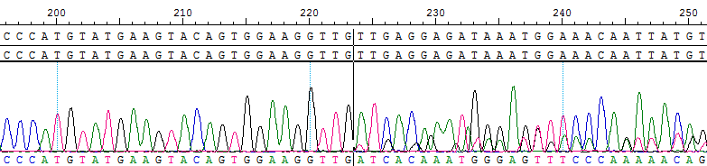 Chr position(GRCh37) chr4-55593613-TT…TG (57bp)Del