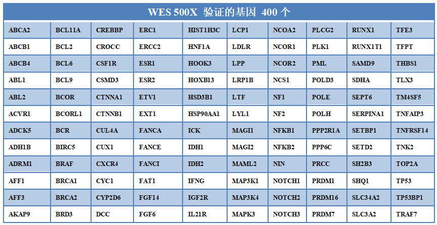 表4. 500X WES驗(yàn)證的400個(gè)基因信息 9. 基因覆蓋科學(xué),超過400個(gè)基因,覆蓋國(guó)內(nèi)外多個(gè)知名panel的設(shè)計(jì);