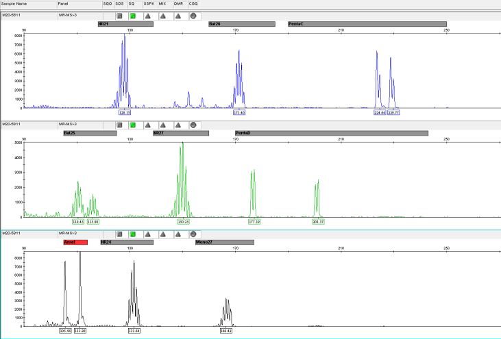 微衛(wèi)星是人類基因組的一段串聯(lián)重復(fù)序列,一般在1~6bp之間,又被稱作短串連重復(fù)(Short Tandem Repeats,STRs)或簡單重復(fù)序列(Simple Sequence Repeat,SSRs)。 微衛(wèi)星不穩(wěn)定(Microsatellite Instability,MSI)指的是微衛(wèi)星重復(fù)次數(shù)減少或者增加,微衛(wèi)星不穩(wěn)定的內(nèi)在機制是錯配修復(fù)(MMR)系統(tǒng)失調(diào),從而限制了糾正微衛(wèi)星自發(fā)的長度改變的體細(xì)胞突變的能力,體細(xì)胞突變積累,最終形成MSI。