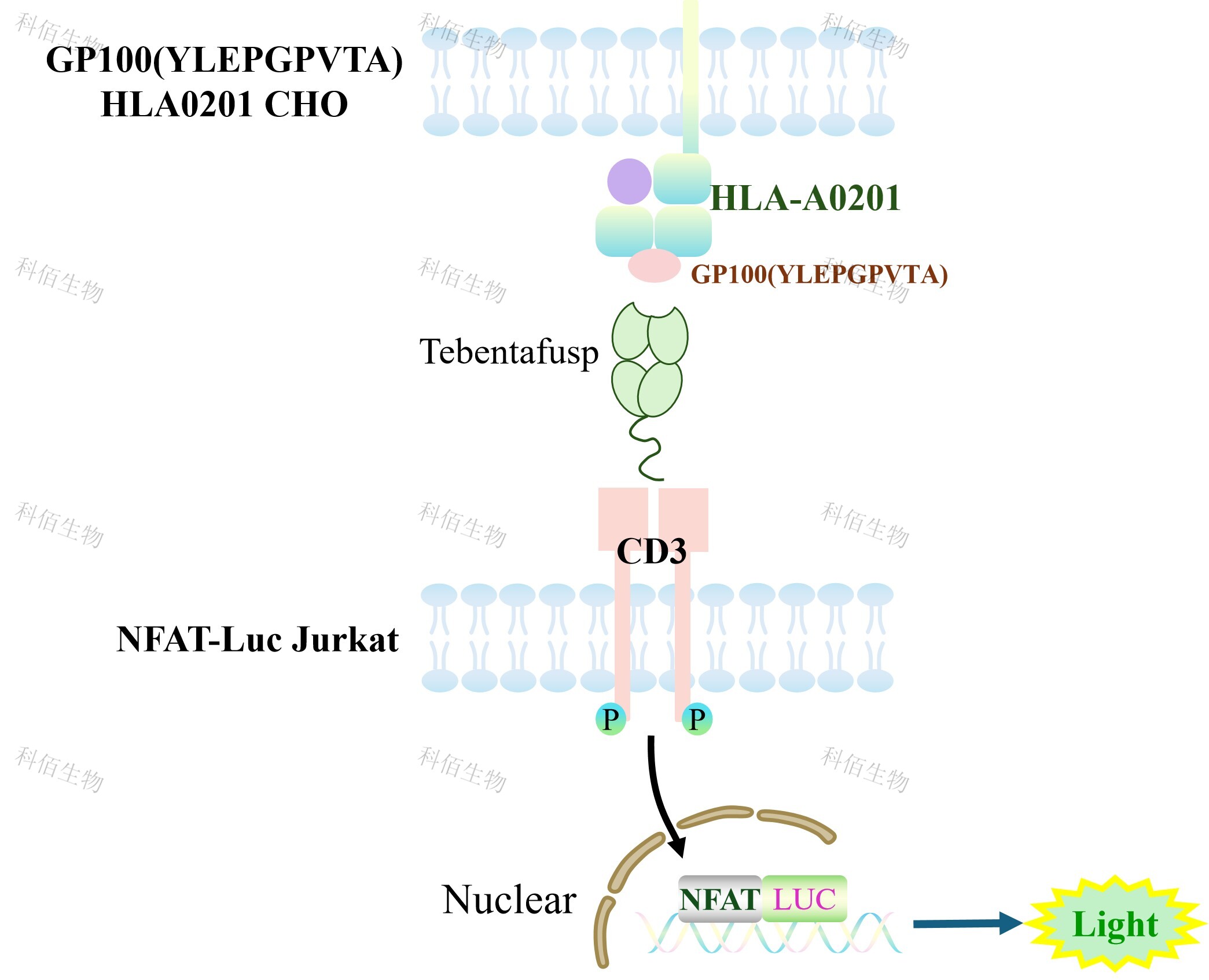 NFAT-Luc Jurkat 報告基因藥靶模型很好的模擬了體內(nèi) NFAT 的信號轉(zhuǎn)導(dǎo)過程,原理見下圖所示。