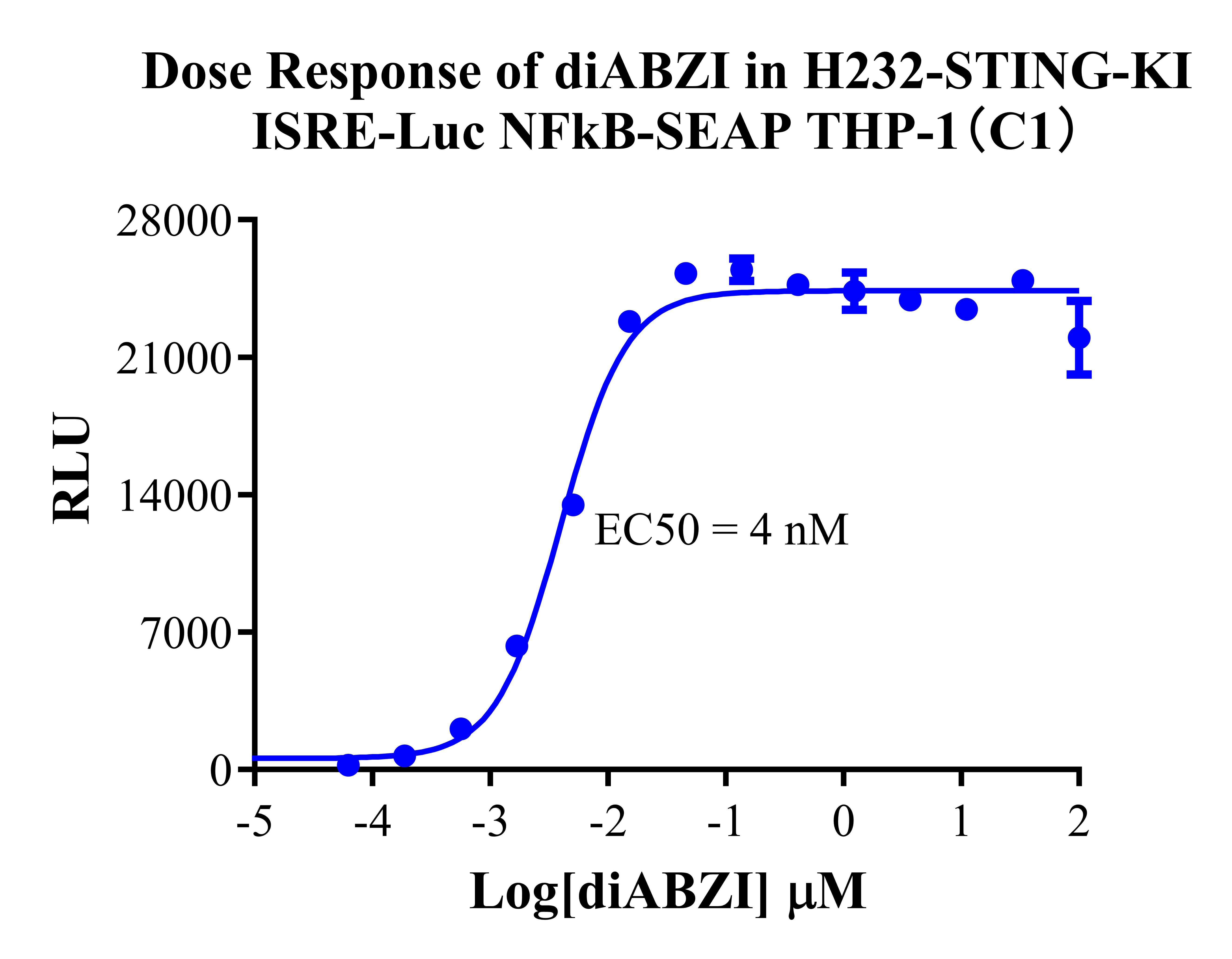 ![]() Figure 2. Dose Response of diABZI in H232-STING-KI ISRE-Luc NFκB-SEAP THP-1(C1). |