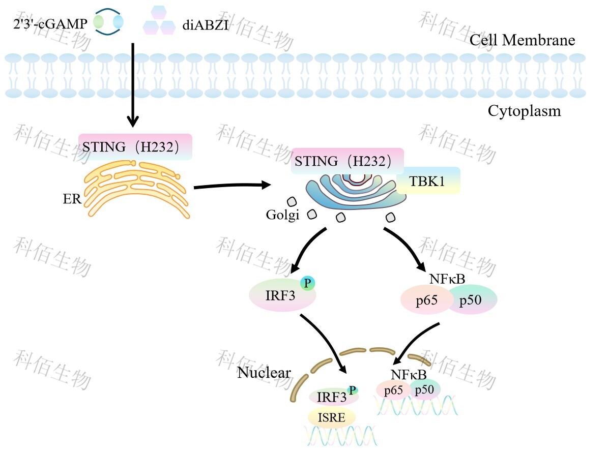 | STING(干擾素基因刺激因子)又稱 MPYS、TMEM173、MITA 和 ERIS,是一種跨膜蛋白,是環(huán)狀二核苷酸(CDN)的直接傳感器。CDN 是細菌信號轉導中普遍存在的第二信 使分子,是哺乳動物細胞的防御觸發(fā)器。當細菌病原體攻擊時,釋放到細胞中的 CDN 直接與 STING 結合,激活的 STING 和 TANK 結合激酶-I (TBK1)相互作用以誘導活性干擾 素調節(jié)因子(IRF3)二聚體,然后該二聚體與細胞核中的干擾素刺激反應元件(ISRE)結 合并導致 IFN-α/β 的產(chǎn)生。IFNβ的產(chǎn)生是 STING 活化的標志。腫瘤微環(huán)境(TME)中由于 天然免疫產(chǎn)生的信號傳導是導致腫瘤特異性 T 細胞激活和腫瘤浸潤性淋巴細胞(TIL)浸 潤的關鍵因素。其中尤其以 I 型 IFN 對腫瘤特異性 T 細胞的活化最為關鍵。因此,STING 激動劑可以通過誘導Ⅰ型干擾素基因的表達,激活包括樹突狀細胞等免疫刺激細胞,改變腫瘤微環(huán)境并誘導腫瘤特異性 T 細胞的產(chǎn)生,從而通過調節(jié)免疫系統(tǒng)達到抗腫瘤的目的。 | |