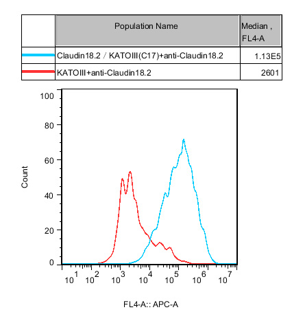 Claudin18.2 KATOIII 細(xì)胞,在 KATOIII 細(xì)胞的基礎(chǔ)上,穩(wěn)定表達(dá)人 Claudin18.2。 |