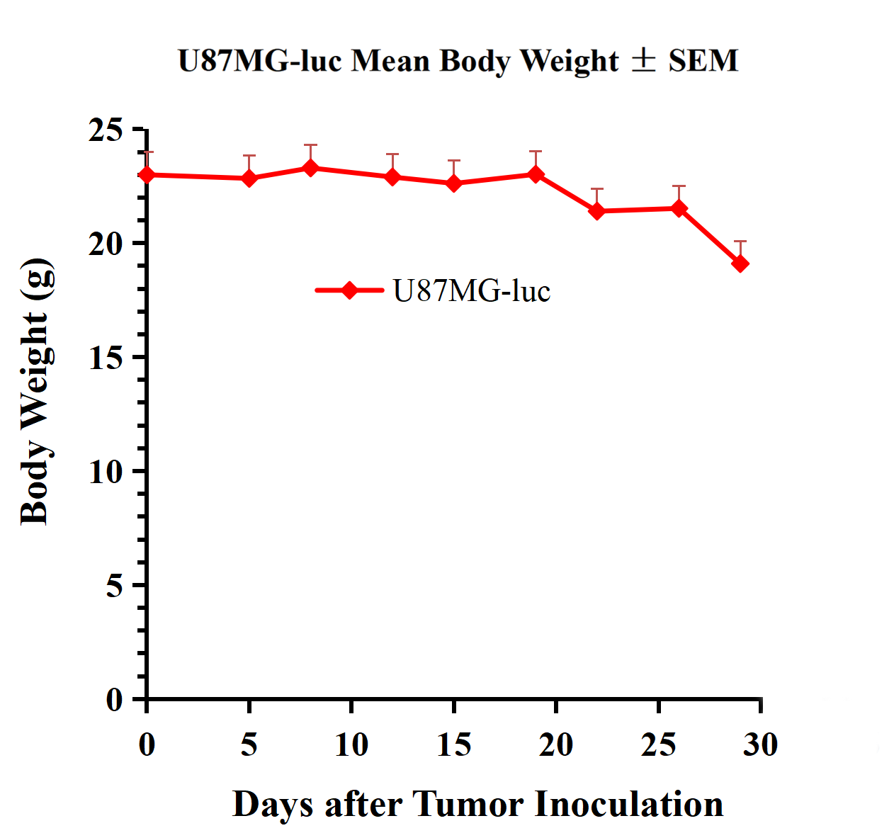 Figure 3.U87MG-Luc Mean Body Weight ± SEM.