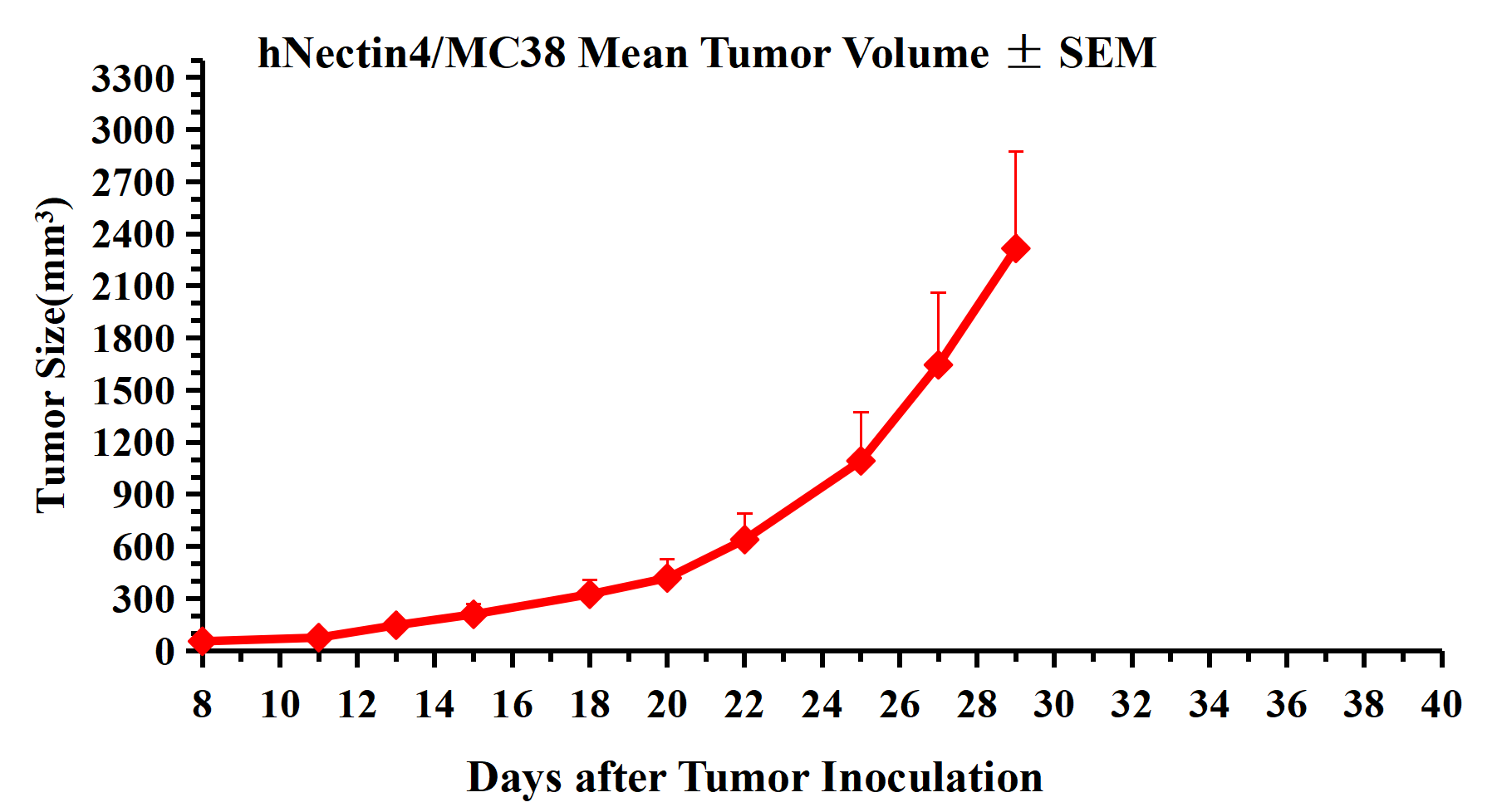 Figure 3. hNectin4/MC38 Mean Tumor Volume ± SEM .