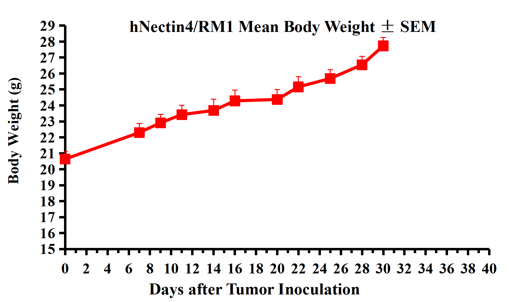 Figure 2. hNectin4/RM1 Mean Body Weight ± SEM.
