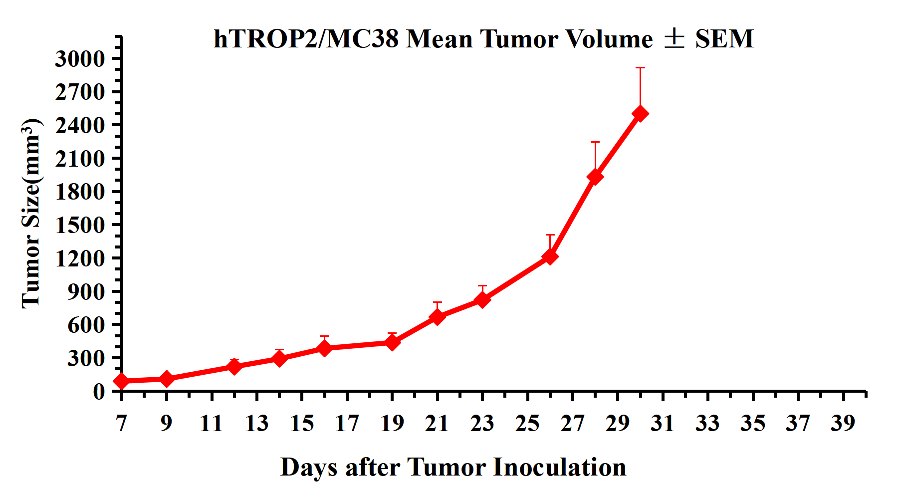 Figure 3. hTROP2/MC38 Mean Tumor Volume ± SEM .