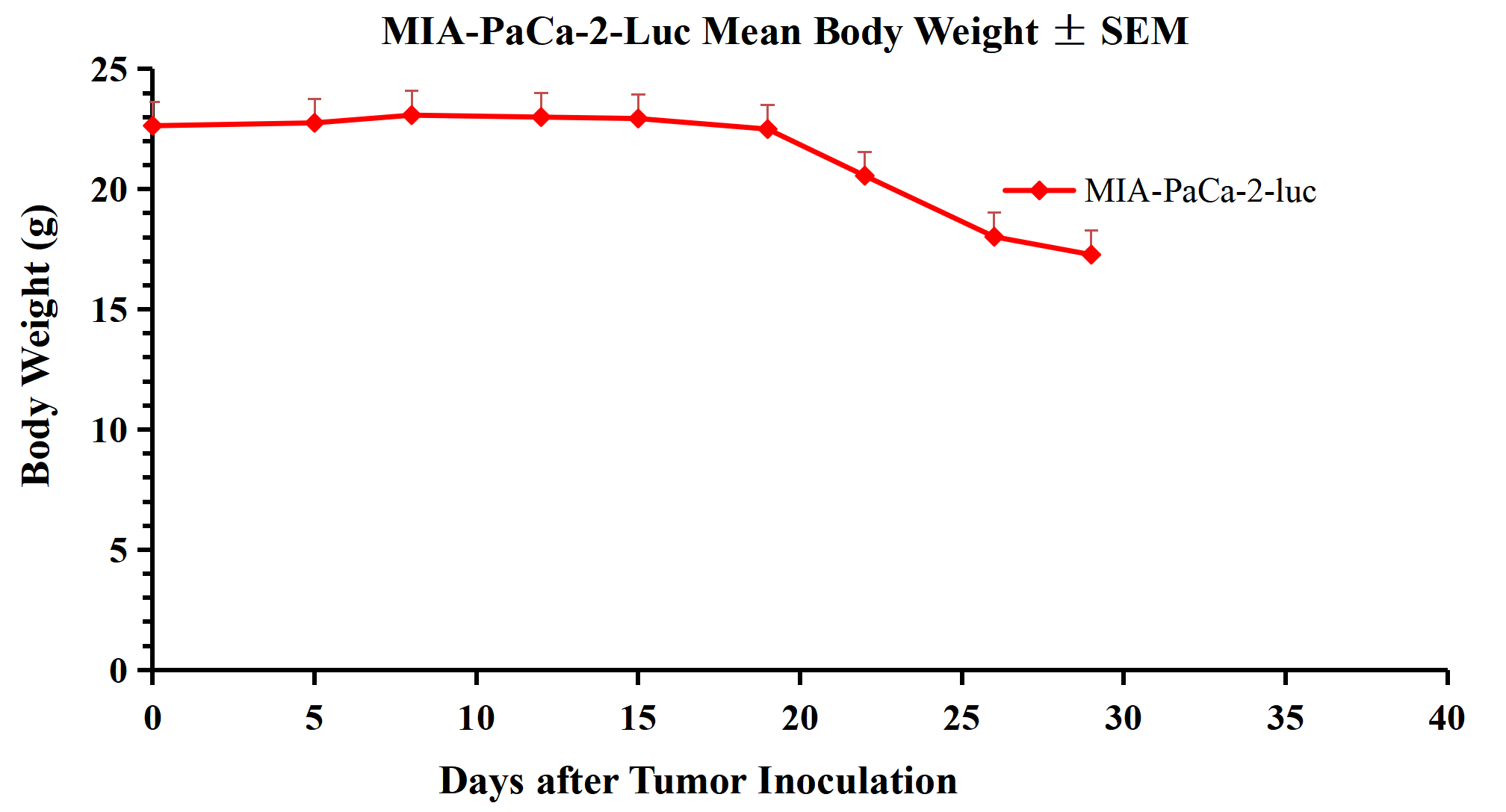 Figure 3. MIA-PaCa-2-Luc Mean Body Weight ± SEM.