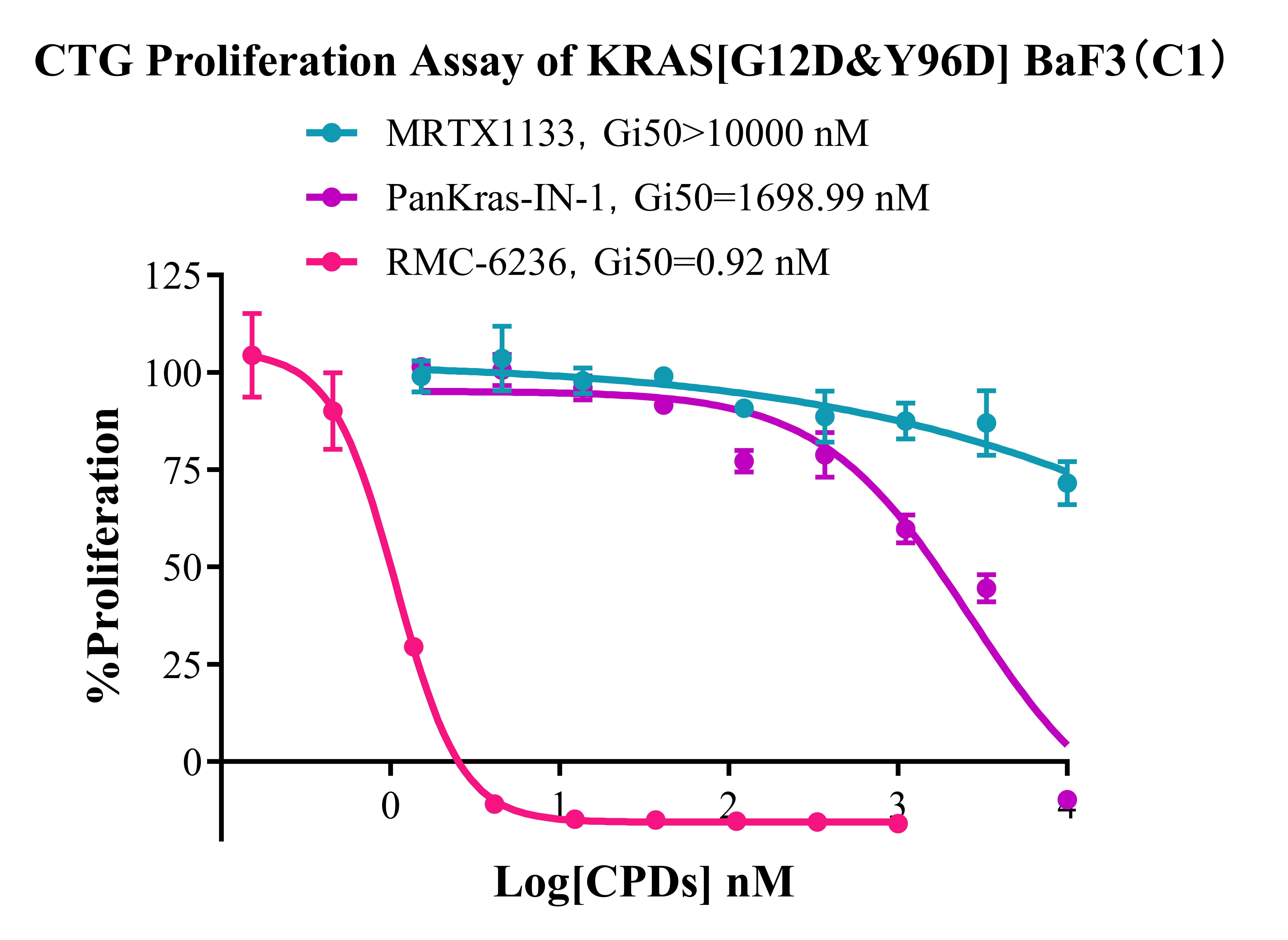 3. Anti-proliferation assay Figure 4. CTG Proliferation Assay of KRAS[G12D&Y96D] BaF3 (C1). |