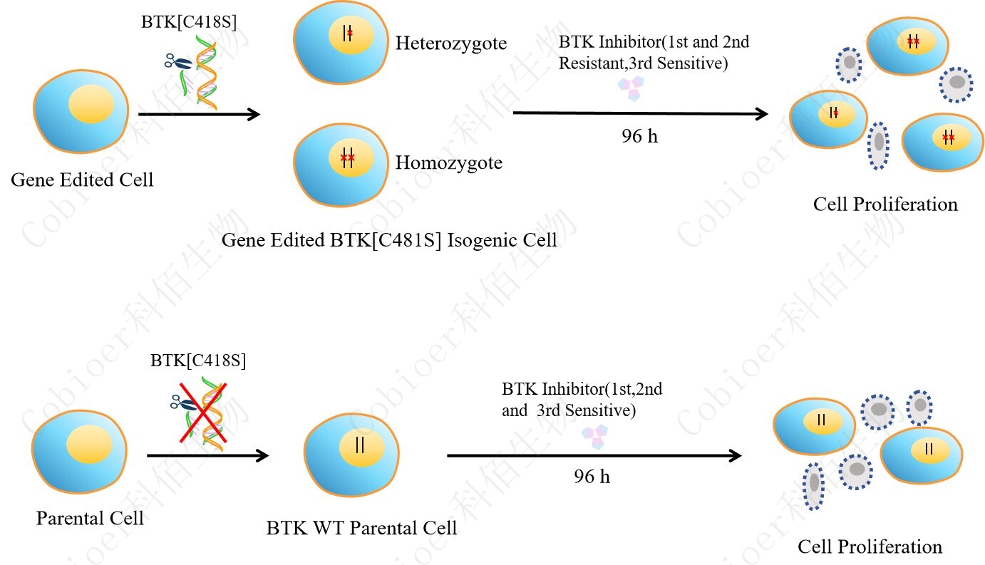 Gene Edited BTK[C481S] Isogenic Cell 藥靶細胞,通過基因編輯的方式 將 BTK 的 481 位氨基酸半胱氨酸(C)突變?yōu)榻z氨酸(S)。