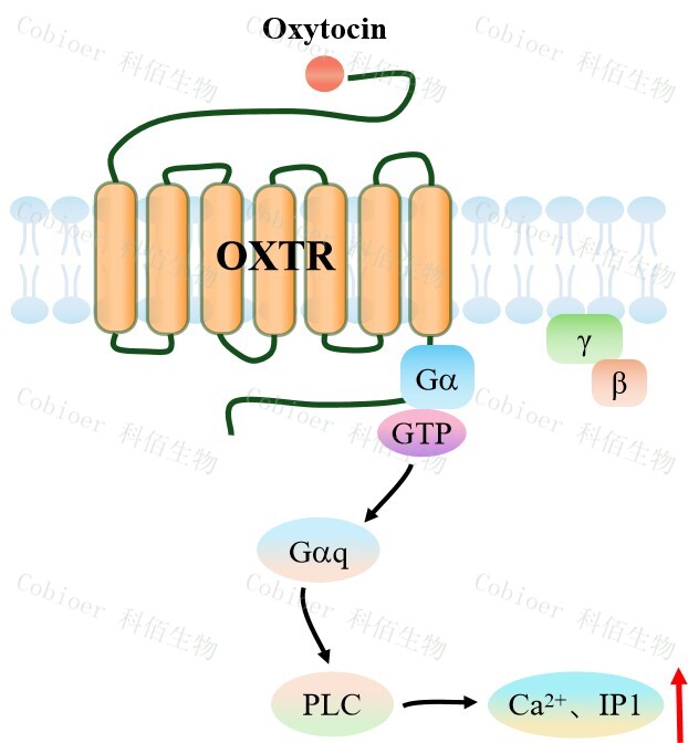 OXTR 作為 GPCR 在多個功能性大腦區(qū)域廣泛表達,包括前額葉皮層、杏仁核、海馬 體、下丘腦和其他區(qū)域。中樞神經(jīng)系統(tǒng)中的 OXTR 參與社會認知、焦慮、抑郁和其他心理 行為或情緒的調(diào)節(jié),激活細胞內(nèi)信號通路,例如 MAPK、PKC 和 PLC 信號傳導。
