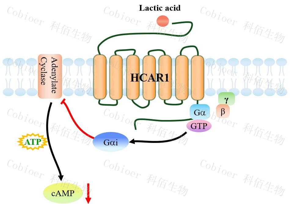 HCAR1(羥基羧酸受體 1),亦稱 GPR81,是一種分布于脂肪組織、免疫細胞(如巨 噬細胞)、神經(jīng)元及肝細胞的 G 蛋白偶聯(lián)受體(GPCR),屬于羥基羧酸受體亞家族,其 內(nèi)源性配體為乳酸(L-lactate);該受體通過偶聯(lián) Gi/o 蛋白,抑制腺苷酸環(huán)化酶,降低 cAMP 水平,從而抑制 PKA 信號,同時激活β-arrestin 通路。其核心功能包括,在脂肪組織 中抑制脂解、促進脂質(zhì)儲存,在免疫細胞中調(diào)控炎癥反應(yīng)(如抑制促炎因子釋放、促進 M2 型巨噬細胞極化),在神經(jīng)系統(tǒng)中參與乳酸介導(dǎo)的神經(jīng)保護及能量穩(wěn)態(tài)調(diào)節(jié);其信號 異常與代謝性疾?。ㄈ绶逝帧⒁葝u素抵抗)、神經(jīng)炎癥疾病(多發(fā)性硬化、腦缺血)及腫 瘤微環(huán)境重塑(乳酸介導(dǎo)的免疫逃逸)密切相關(guān),尤其在腫瘤組織中高表達的 HCAR1 可 通過抑制抗腫瘤免疫應(yīng)答促進進展,成為代謝-免疫交叉治療的潛在靶點。 |