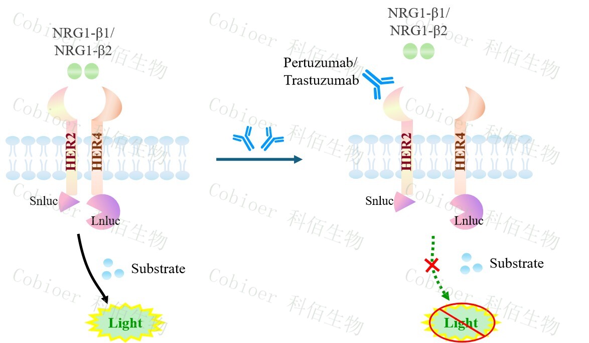 ERBB2&ERBB4 Dimerization CHO 報(bào)告基因藥靶模型很好的模擬了體 內(nèi) ERBB2&ERBB4 的信號轉(zhuǎn)導(dǎo)過程,原理見圖所示。![]() Figure 1. ERBB2&ERBB4 Dimerization CHO 細(xì)胞模型原理圖 |