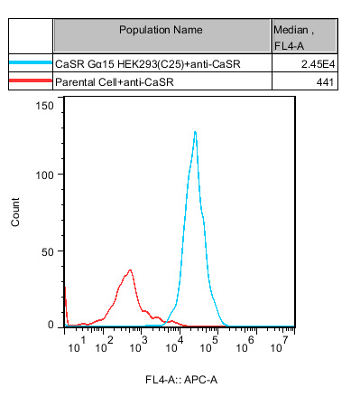 CaSR Gα15 HEK293 藥靶模型很好的模擬了體內(nèi) CaSR 的信號(hào)轉(zhuǎn)導(dǎo)過程,原理見下圖所示。![]() Figure 1. CaSR Gα15 HEK293 細(xì)胞模型原理圖 |