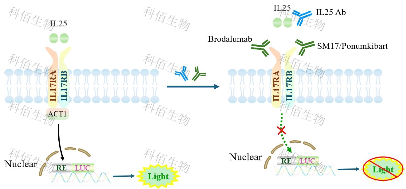 IL25 Effector Reporter Cell(Adherent)報告基因藥靶模型很好的模擬了體內(nèi) IL25 的信號轉(zhuǎn)導(dǎo)過程,原理見下圖所示。![]() Figure 1. IL25 Effector Reporter Cell(Adherent)細胞模型原理圖 |