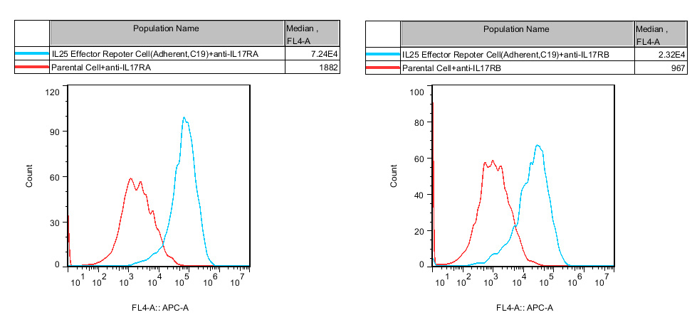 ![]() Figure 2. Recombinant IL25 Effector Reporter Cell(Adherent) stably expressing IL17RA & IL17RB. ![]() Figure 3. Dose Response of Recombinant Human IL25 in IL25 Effector Reporter Cell(Adherent, C19). ![]() Figure 4. Inhibition of Human IL25-induced Reporter Activity by IL25 Neutralization Ab or IL17RA&RB Blocking Abs in IL25 Effector Reporter Cell(Adherent, C19). |