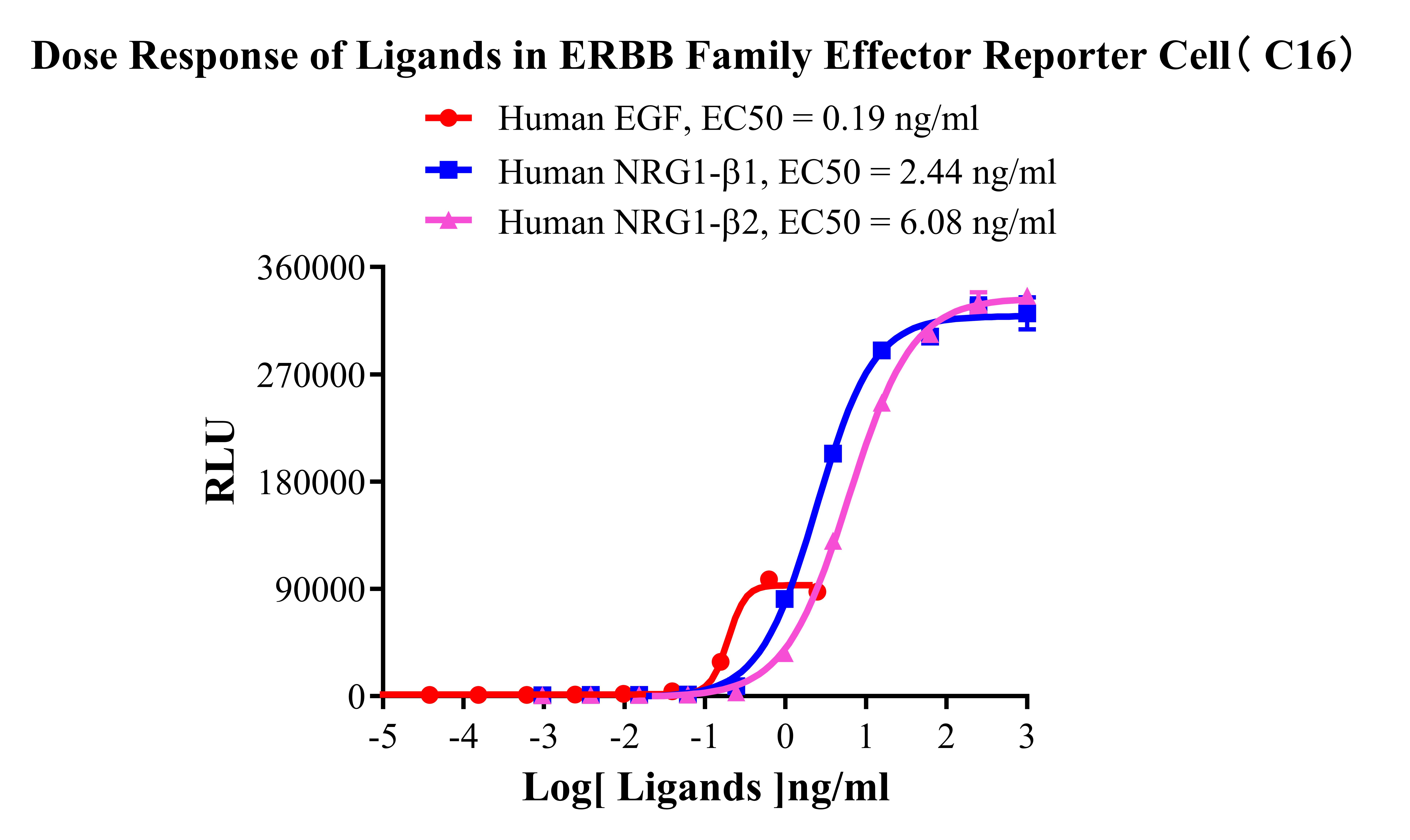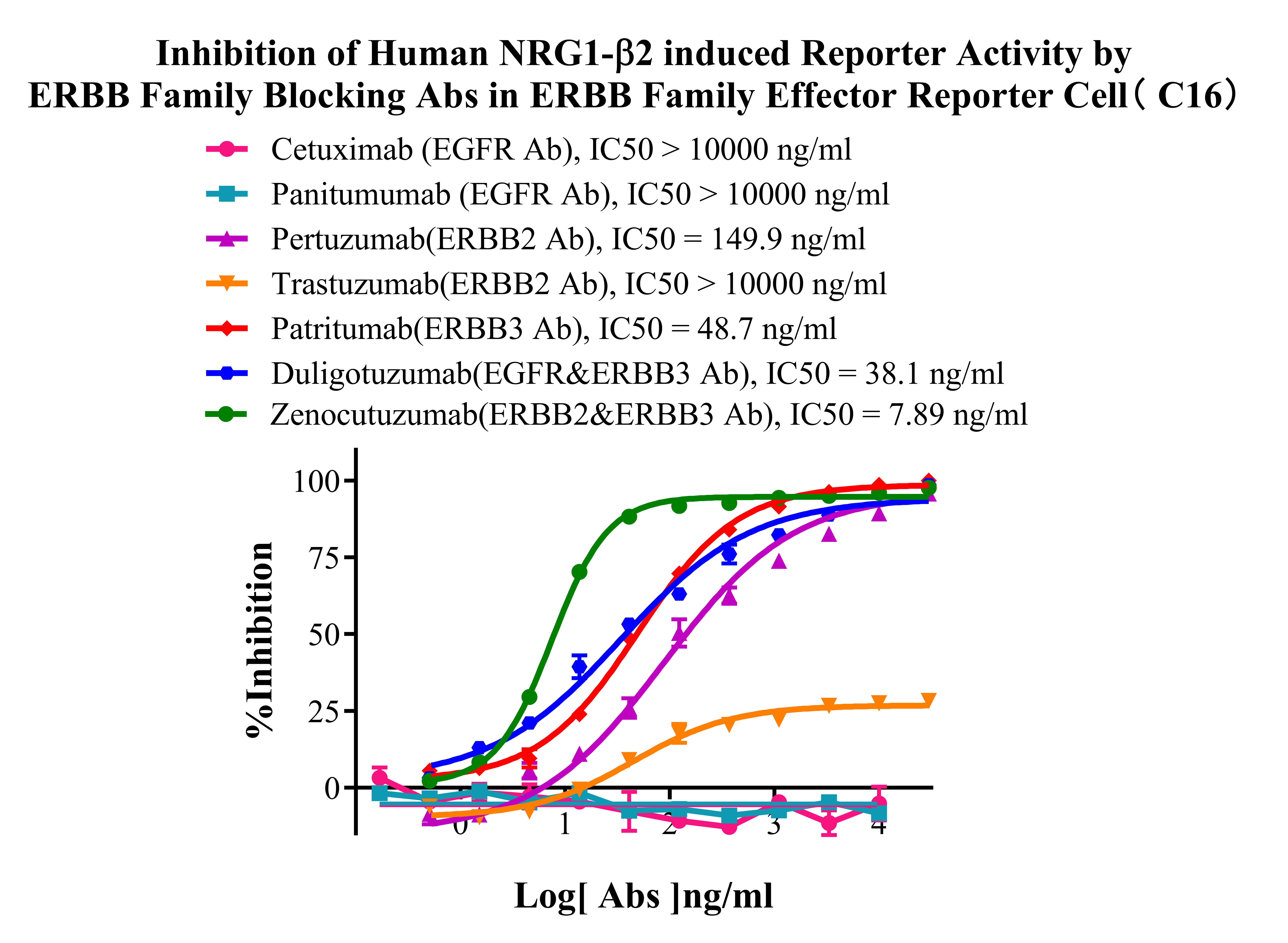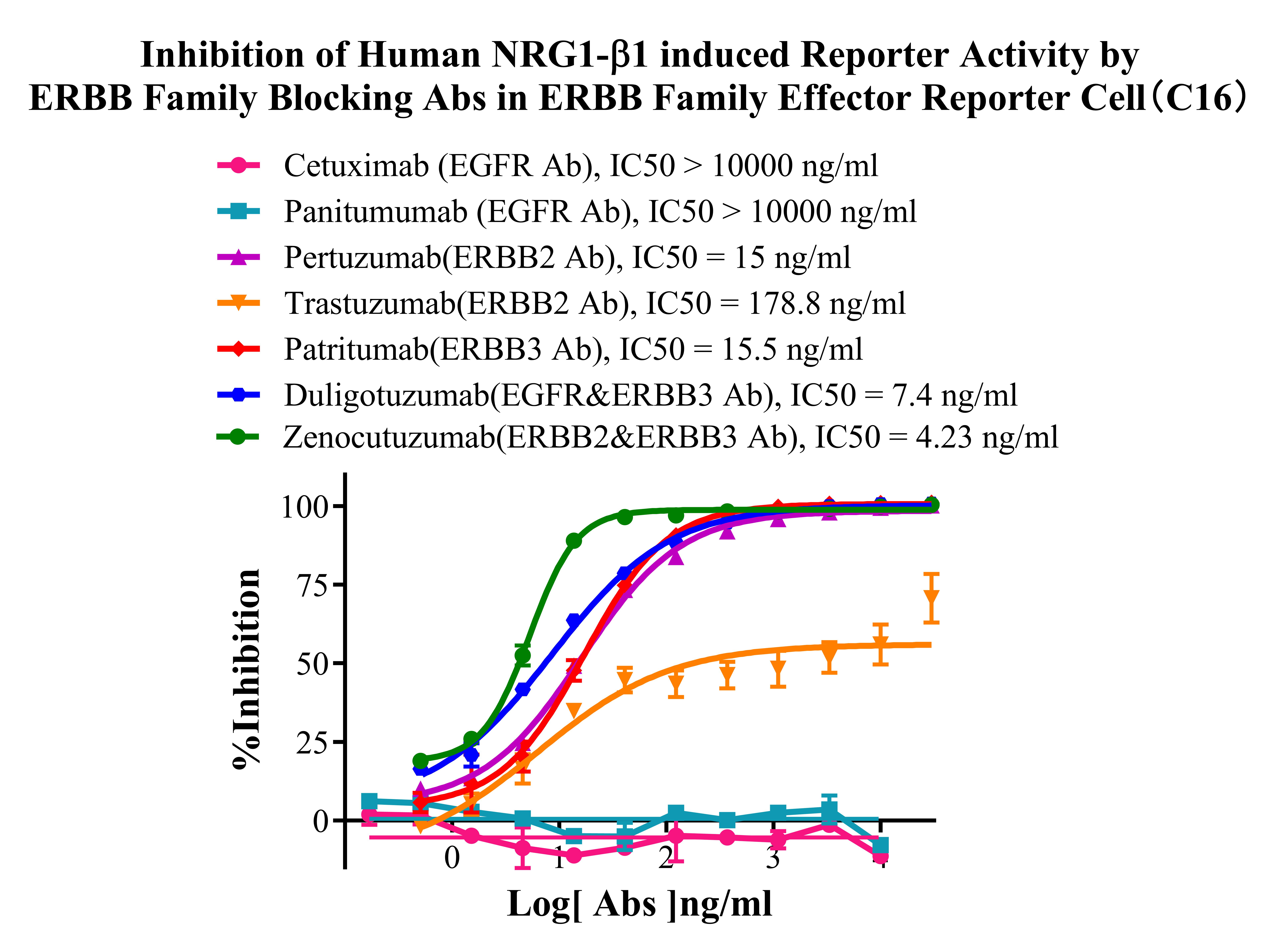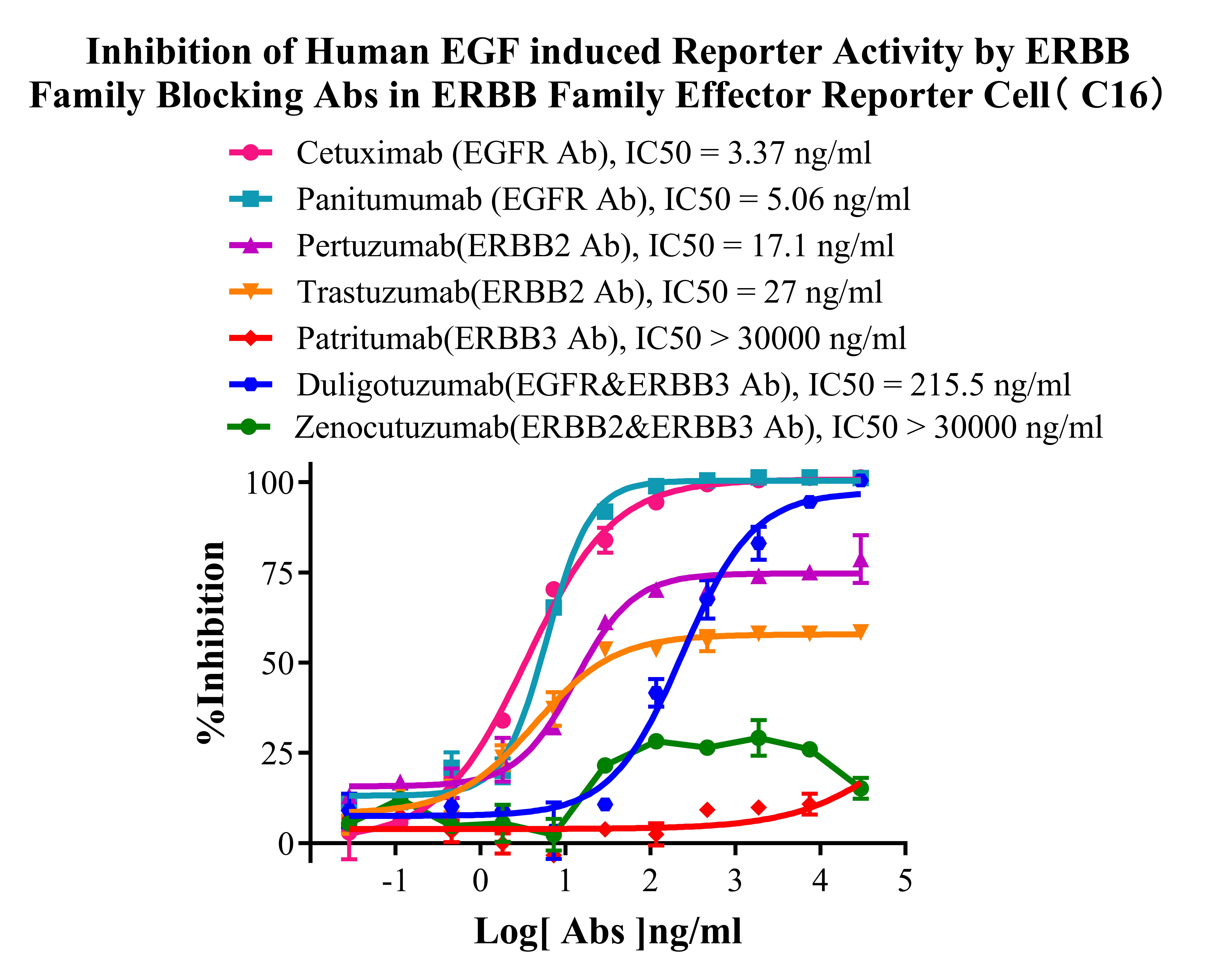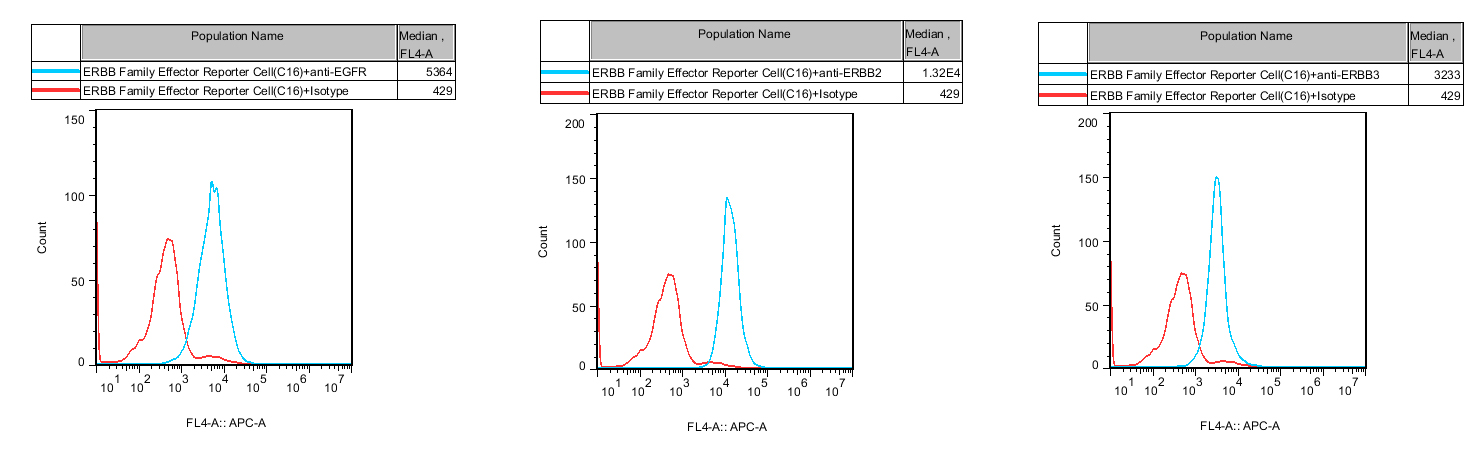 ![]() Figure 2. WB of ERBB Family Effector Reporter Cell. ![]() Figure 3. Recombinant ERBB Family Effector Reporter Cell stably expressing EGFR & ERBB2 & ERBB3. ![]() Figure 4. Dose Response of Ligands in ERBB Family Effector Reporter Cell (C16). ![]() Figure 5. Inhibition of Human EGF induced Reporter Activity by ERBB Family Blocking Abs in ERBB Family Effector Reporter Cell(C16). ![]() Figure 6. Inhibition of Human EGF induced Reporter Activity by ERBB Family Small Molecular Inhibitor in ERBB Family Effector Reporter Cell( C16). ![]() Figure 7. Inhibition of Human NRG1-β1 induced Reporter Activity by ERBB Family Blocking Abs in ERBB Family Effector Reporter Cell(C16). ![]() Figure 8. Inhibition of Human NRG1-β1 induced Reporter Activity by ERBB Family Small Molecular Inhibitor in ERBB Family Effector Reporter Cell (C16). ![]() Figure 9. Inhibition of Human NRG1-β2 induced Reporter Activity by ERBB Family Blocking Abs in ERBB Family Effector Reporter Cell(C16). ![]() Figure 10. Inhibition of Human NRG1-β2 induced Reporter Activity by ERBB Family Small Molecular Inhibitor in ERBB Family Effector Reporter Cell (C16). |
