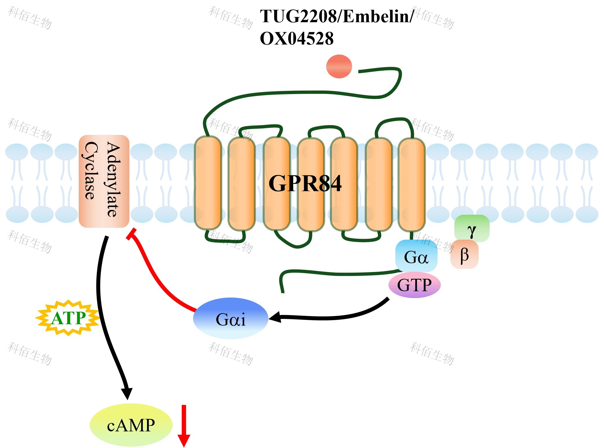 | GPR84 是一種在巨噬細胞和中性粒細胞等髓系免疫細胞中高表達的 A 類 GPCR,正常 狀態(tài)下表達水平較低,但在脂多糖(LPS)或促炎細胞因子刺激下顯著上調(diào),被視為連接 脂肪酸代謝與先天性免疫應(yīng)答的關(guān)鍵節(jié)點。GPR84 的內(nèi)源性配體主要為碳鏈長度 C9-C14 的中鏈脂肪酸(以癸酸和月桂酸為代表),合成激動劑 6-OAU 和 DL-175 常用于實驗研究。 在信號轉(zhuǎn)導(dǎo)層面,GPR84 主要通過偶聯(lián)抑制性 G 蛋白(Gi/o)發(fā)揮功能:活化后抑制腺苷 酸環(huán)化酶、降低胞內(nèi)環(huán)磷酸腺苷(cAMP)水平,同時其釋放的 Gβγ亞基可激活磷脂酶 C (PLC)、磷脂酰肌醇 3-激酶(PI3K)及絲裂原活化蛋白激酶(MAPK/ERK)通路,最終 促進 TNFα、IL-6 等促炎因子釋放,并增強中性粒細胞的趨化、黏附及活性氧產(chǎn)生,從而 在炎癥性腸病、器官纖維化和代謝綜合征等病理過程中發(fā)揮促炎推動作用。 | |