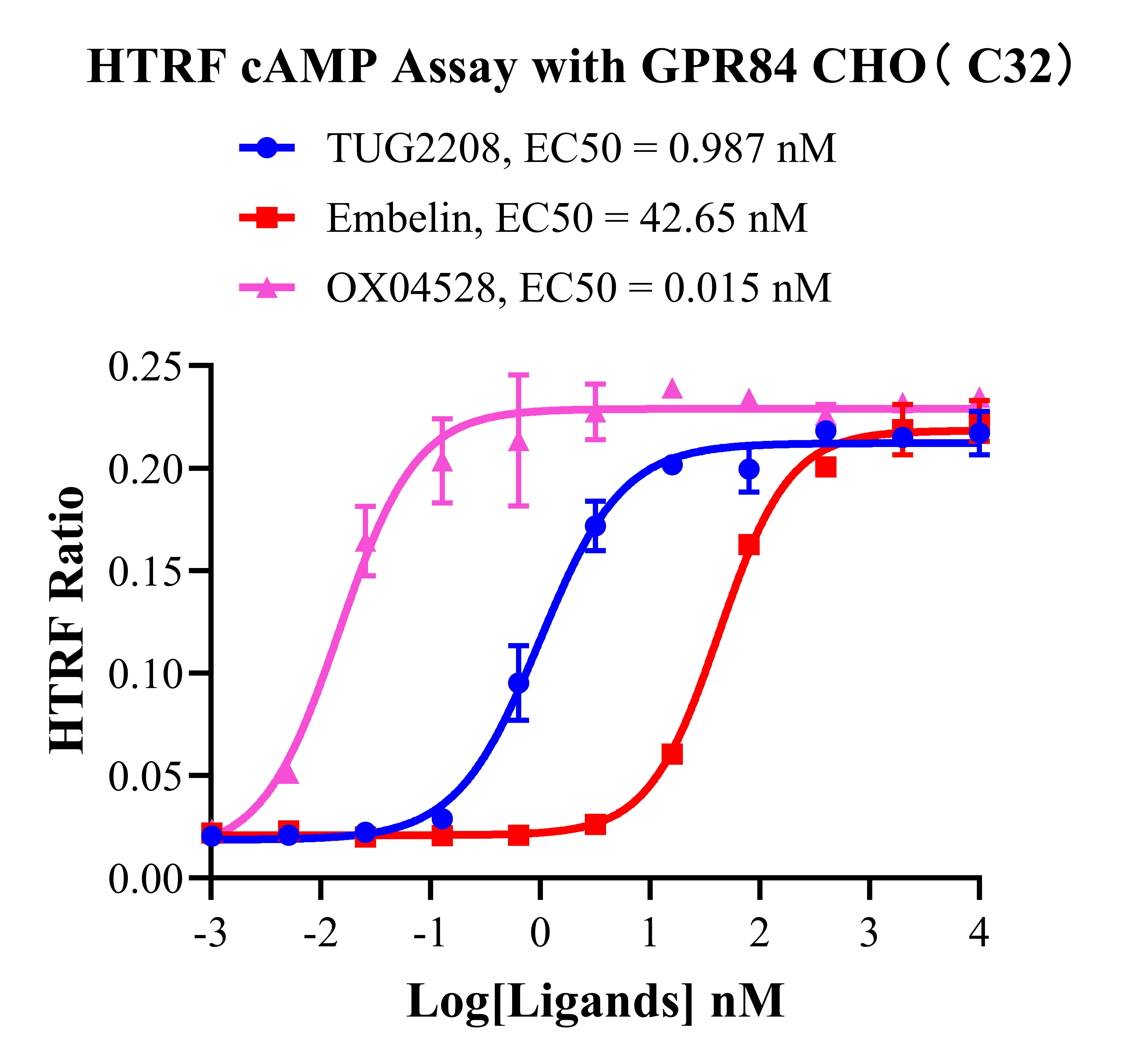 V. Representative Data![]() Figure 2. HTRF cAMP Assay with GPR84 CHO( C32). |