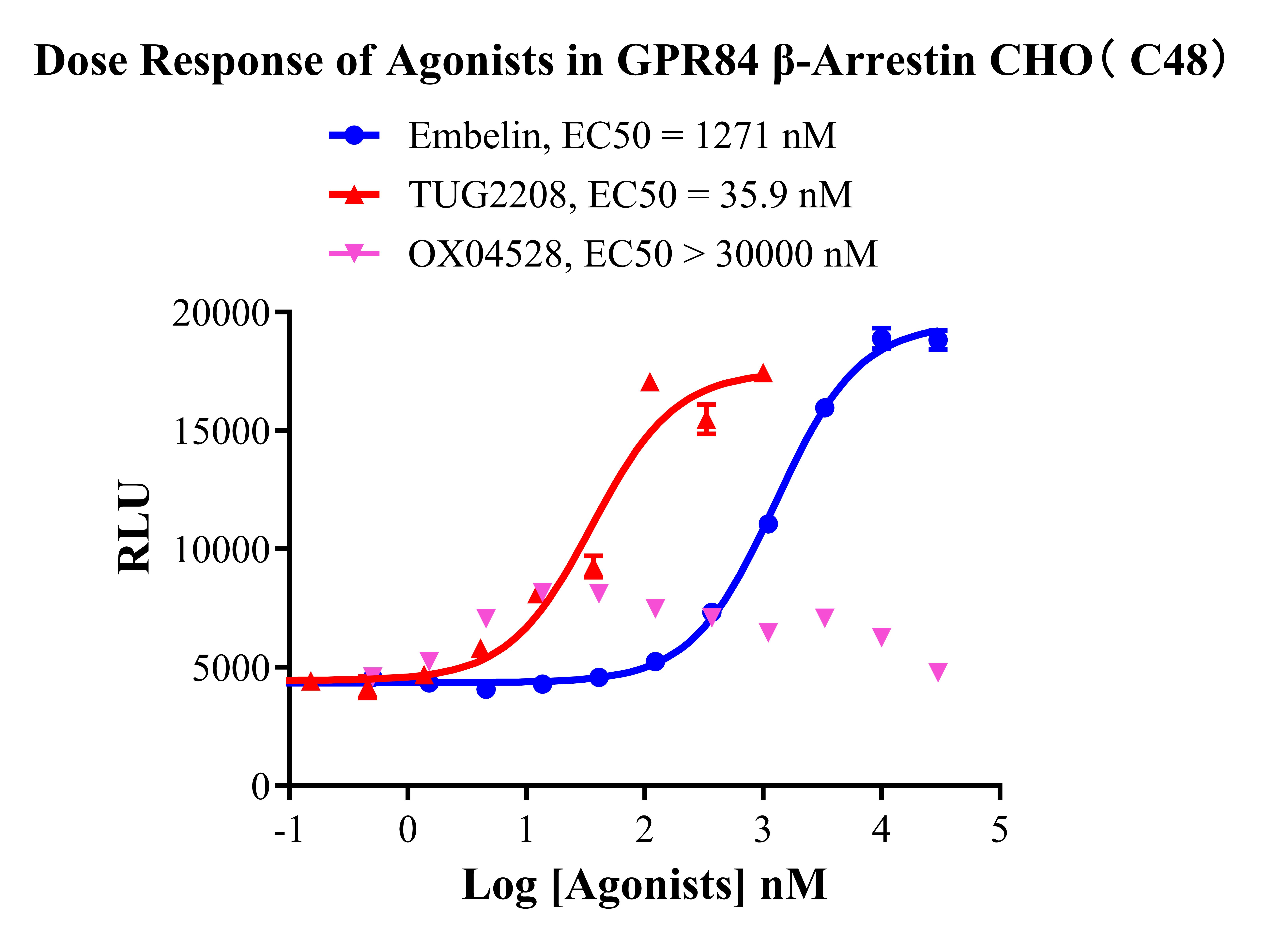 V. Representative Data![]() Figure 2. Dose Response of Agonists in GPR84 β-Arrestin CHO(C48). |