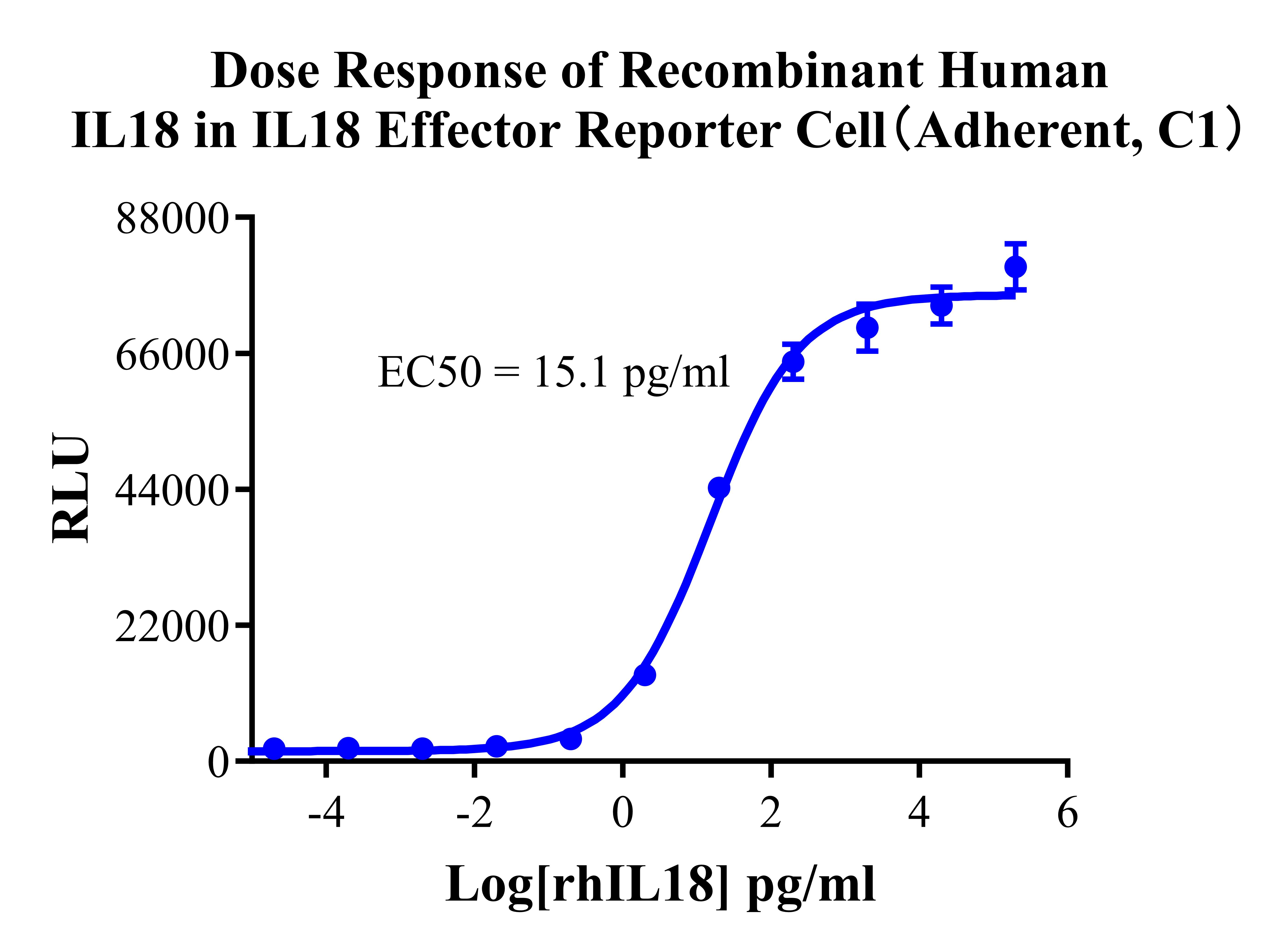 ![]() Figure 2. Dose Response of Recombinant Human IL18 in IL18 Effector Reporter Cell(Adherent, C1). |