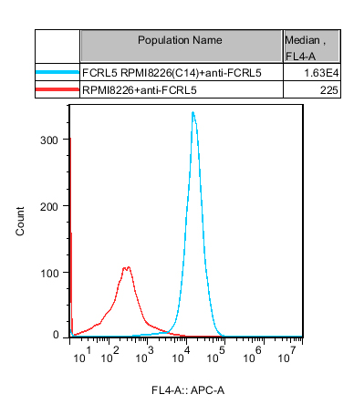 ![]() Figure 1. Recombinant FCRL5 RPMI8226 constitutively expressing FCRL5. |