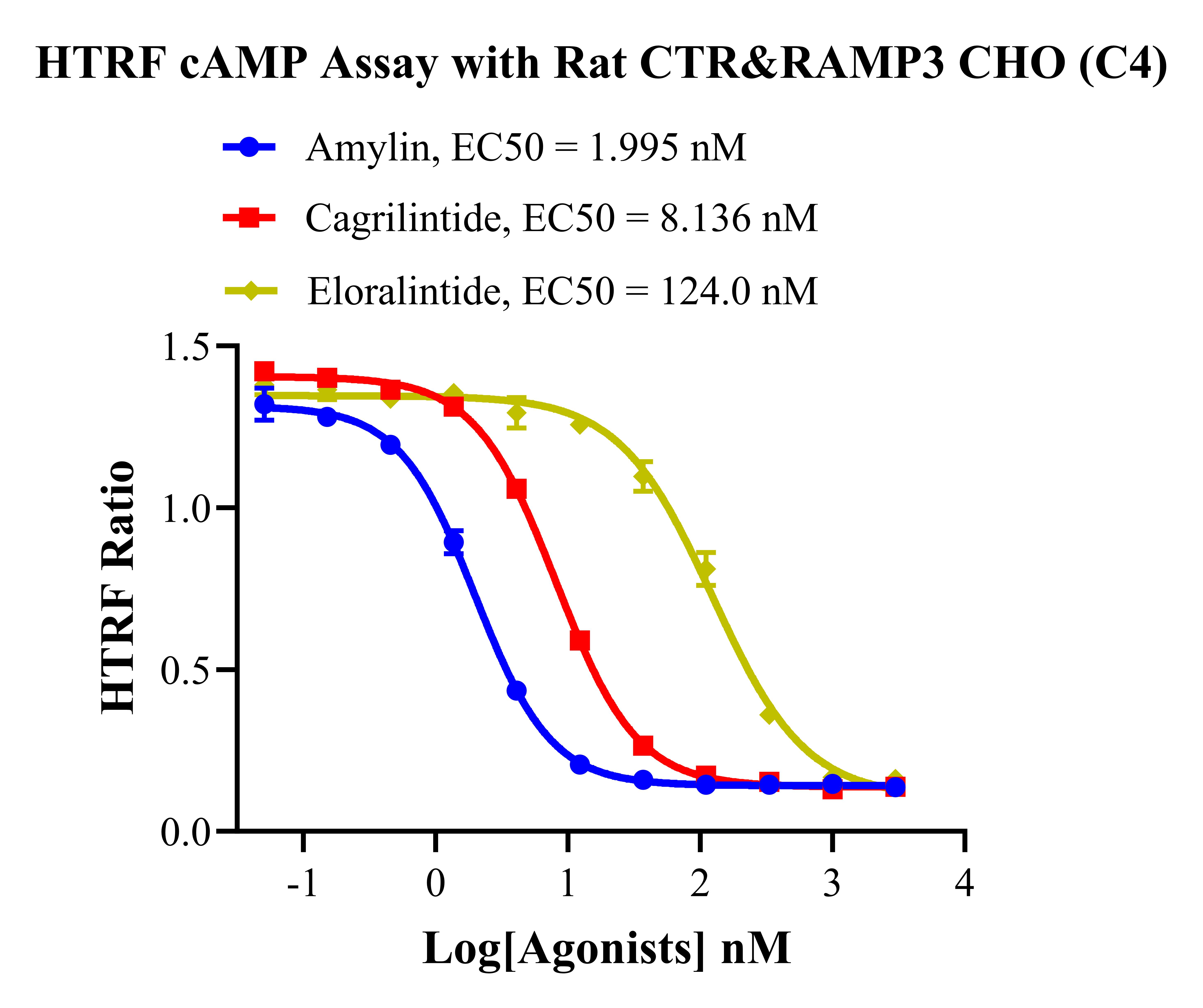 V. Representative Data![]() Figure 2. HTRF cAMP Assay with Rat CTR&RAMP3 CHO(C4). |