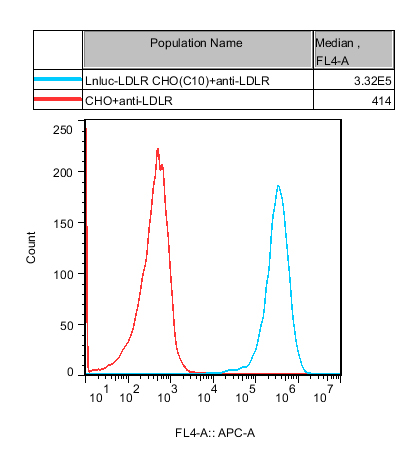 Lnluc-LDLR CHO 藥靶模型很好的模擬了體內(nèi) LDLR 的信號(hào)轉(zhuǎn)導(dǎo)過程,原理見下圖所示。 |