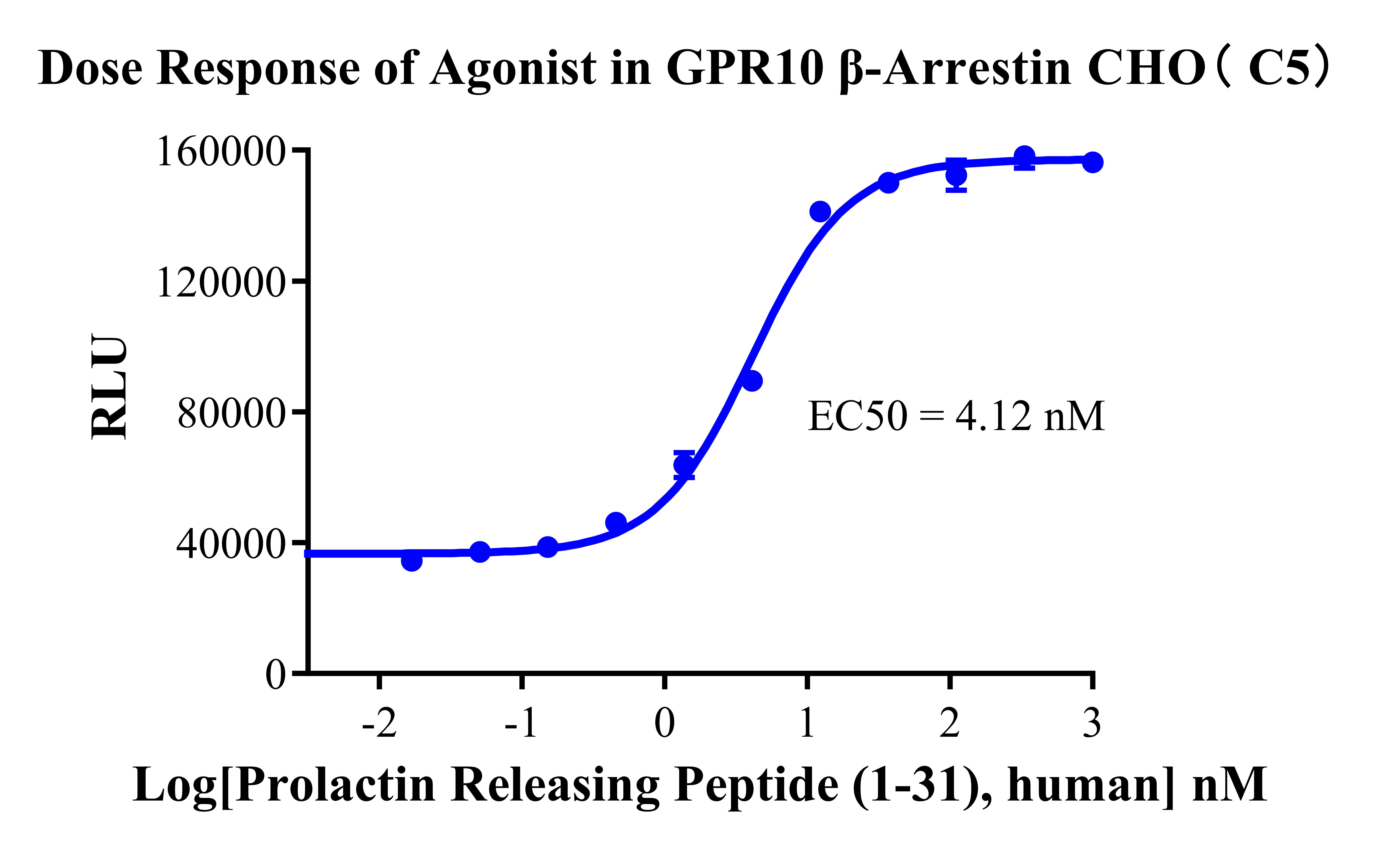 | GPR10(催乳素釋放肽受體,PrRPR),是一種典型的 A 類 GPCR,主要分布于中樞 神經(jīng)系統(tǒng),特別是下丘腦、丘腦和腦干等調(diào)控能量平衡、痛覺和心血管功能的腦區(qū)。 GPR10 的內(nèi)源性配體是催乳素釋放肽(PrRP),這是一種神經(jīng)肽,最初因其促進催乳素釋 放的能力而得名,但后續(xù)研究發(fā)現(xiàn)其核心功能在于調(diào)節(jié)攝食和能量代謝。PrRP 存在兩種亞 型:PrRP31 和 PrRP20,它們以高親和力結(jié)合并激活 GPR10,啟動下游信號級聯(lián)反應(yīng)。 當(dāng)配體 PrRP 與 GPR10 結(jié)合后,會誘導(dǎo)受體構(gòu)象變化,進而激活與之偶聯(lián)的 G 蛋白。 GPR10 主要與 Gq/11 家族 G 蛋白偶聯(lián),激活的 Gq 蛋白進一步激活 PLC,催化細(xì)胞膜上的 磷脂酰肌醇二磷酸(PIP2)水解生成三磷酸肌醇(IP3)和二酰甘油(DAG)。IP3 與內(nèi)質(zhì) 網(wǎng)上的 IP3 受體結(jié)合,促使細(xì)胞內(nèi)鈣庫釋放 Ca 2+,導(dǎo)致胞內(nèi)鈣離子濃度迅速升高;同時, DAG 激活蛋白激酶 C(PKC)。此外,研究也表明 GPR10 在某些細(xì)胞背景下能與 Gi/o 蛋 白偶聯(lián),抑制腺苷酸環(huán)化酶活性,降低胞內(nèi) cAMP 水平。這些信號通路的激活最終會調(diào)控 神經(jīng)元興奮性、基因表達(dá)及神經(jīng)肽釋放,從而介導(dǎo) GPR10 在抑制食欲、調(diào)節(jié)能量代謝及削 弱阿片鎮(zhèn)痛效應(yīng)等方面的生理功能。該受體的信號主要通過 G 蛋白偶聯(lián)受體激酶(GRK) 磷酸化和隨后的β-arrestin 結(jié)合來實現(xiàn)脫敏和內(nèi)吞。 |
