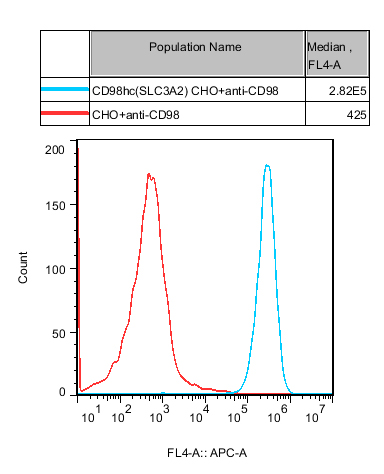 ![]() Figure 1. Recombinant CD98hc(SLC3A2) CHO constitutively expressing CD98hc(SLC3A2). |