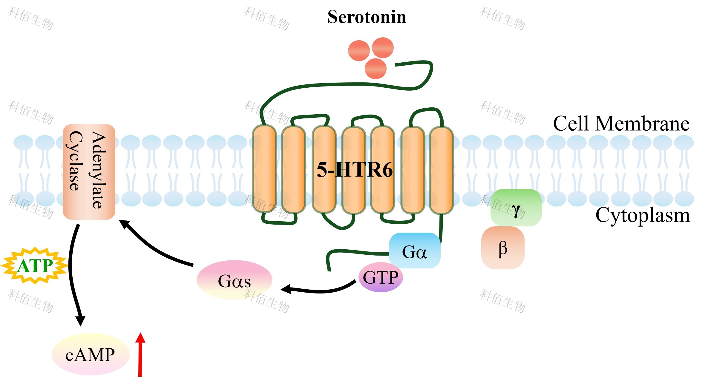 | HTR6(5-HT6 受體)是血清素受體家族中的一種 G 蛋白偶聯(lián)受體,該受體在中樞神經(jīng)系統(tǒng)內(nèi)高度特異性表達(dá),尤其富集于海馬體、大腦皮層和紋狀體等與認(rèn)知、記憶及情緒調(diào)控密切相關(guān)的腦區(qū)。HTR6 因其獨(dú)特的分布特征,被認(rèn)為與阿爾茨海默病、精神分裂癥的 認(rèn)知缺陷以及肥胖等疾病病理有關(guān),從而成為一個備受關(guān)注的治療靶點(diǎn)。 HTR6 經(jīng)典的通路機(jī)制是通過偶聯(lián) Gs,激活腺苷酸環(huán)化酶,進(jìn)而提升細(xì)胞內(nèi)第二信使 cAMP 的水平。升高的 cAMP 會進(jìn)一步激活 PKA,并調(diào)控下游的轉(zhuǎn)錄因子,最終影響神經(jīng) 元的可塑性與基因表達(dá)。HTR6 通過這一核心通路,廣泛地交叉調(diào)節(jié)膽堿能、谷氨酸能及 多巴胺能等多重神經(jīng)遞質(zhì)系統(tǒng)。例如,它能增強(qiáng)前腦膽堿能神經(jīng)元的活動,促進(jìn)乙酰膽堿釋放,這是其影響學(xué)習(xí)記憶的關(guān)鍵環(huán)節(jié)。此外,研究表明 HTR6 也可能偶聯(lián)其他 G 蛋白 (如 Gq)或通過β-arrestin 通路發(fā)揮功能,這種信號通路的多樣性與腦區(qū)特異性,共同構(gòu)成了其復(fù)雜生物學(xué)效應(yīng)的基礎(chǔ),也部分解釋了針對單一靶點(diǎn)藥物研發(fā)的困境。 |