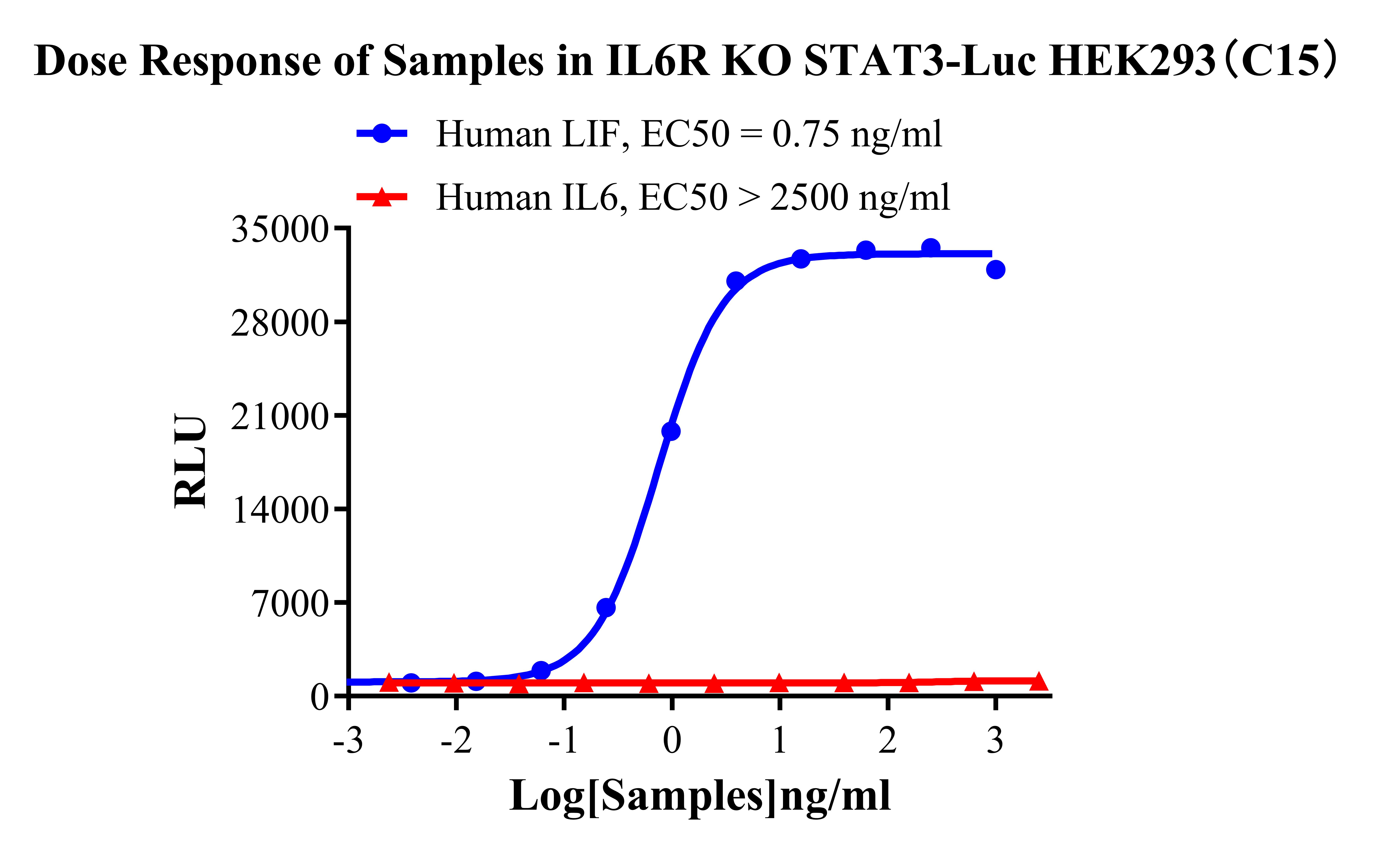 ![]() Figure 1. Dose Response of Samples in IL6R KO STAT3-Luc HEK293(C15). |