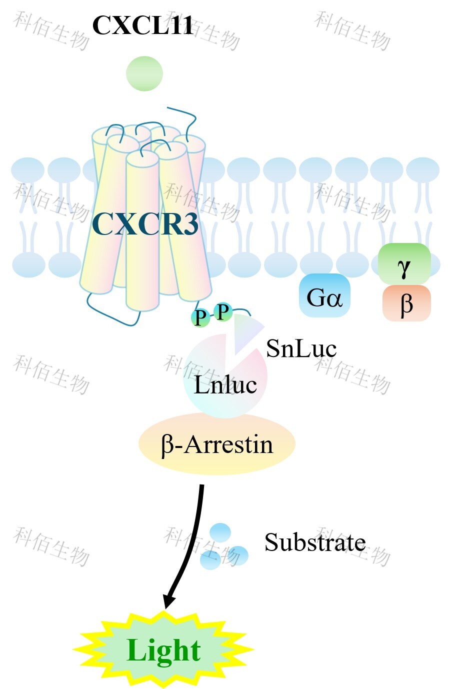 CXCR3 β-Arrestin CHO 報告基因藥靶模型很好的模擬了體內(nèi) CXCR3/β-Arrestin 的信號轉(zhuǎn)導(dǎo)過程,原理見下圖所示。 ![]() Figure 1. CXCR3 β-Arrestin CHO 細(xì)胞模型原理圖 |