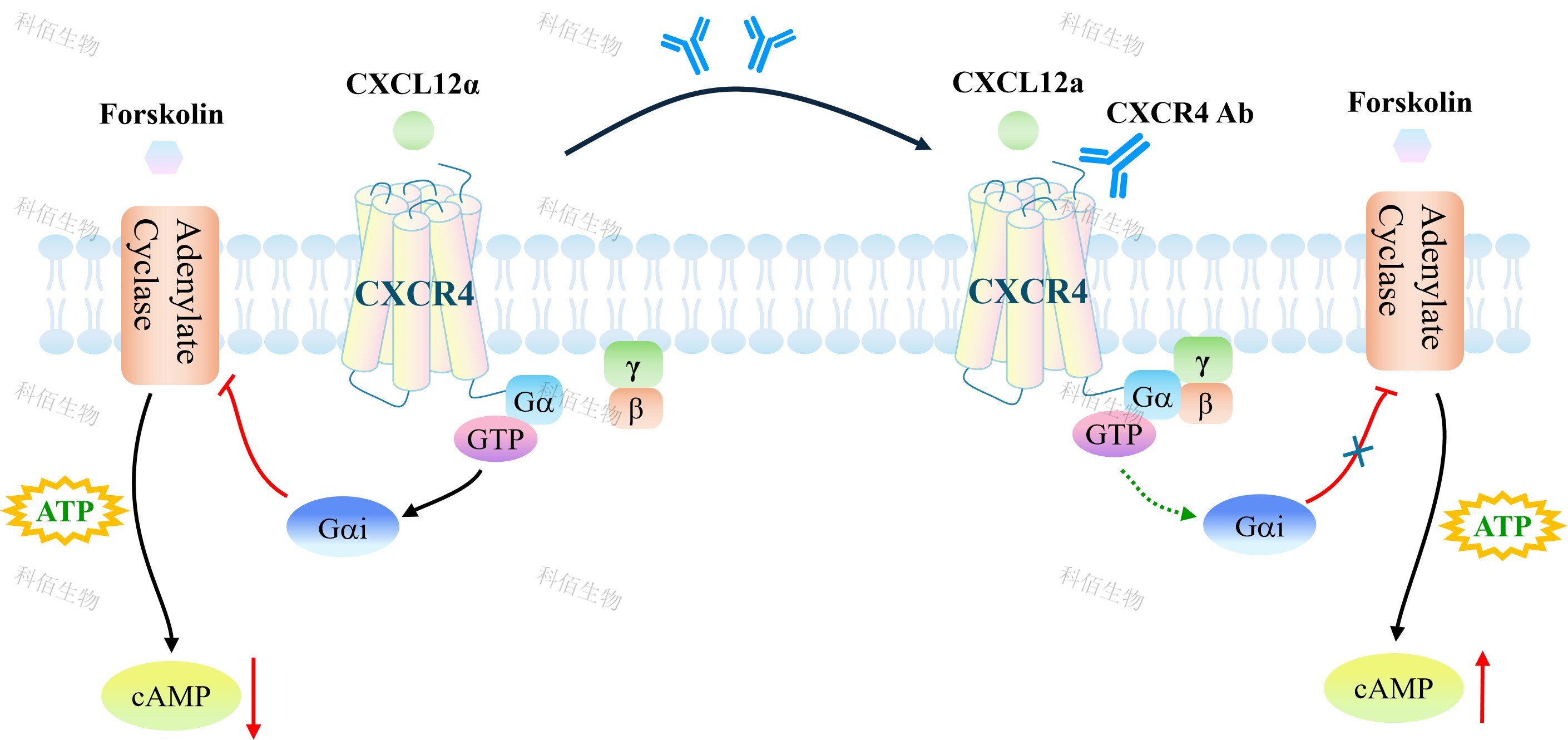 | CXCR4(C-X-C 趨化因子受體 4 型)是一種在人體內(nèi)廣泛表達的蛋白質(zhì),屬于 GPCR 家族,具有典型的七次跨膜結(jié)構(gòu)。它的專屬配體是 CXCL12(也稱 SDF-1,基質(zhì)細胞衍生 因子-1)。在生理狀態(tài)下,CXCR4 在免疫細胞(如 T 細胞、B 細胞)、造血干細胞以及多種組織中均有表達,主要負責(zé)調(diào)控細胞的遷移、歸巢和滯留,在免疫應(yīng)答、胚胎發(fā)育以及造血干細胞的骨髓錨定中扮演著至關(guān)重要的角色。 當(dāng) CXCL12 與 CXCR4 結(jié)合后,會引發(fā)受體構(gòu)象改變,進而激活細胞內(nèi)多條信號通路。首先,受體偶聯(lián)的 G 蛋白被激活,進而抑制細胞凋亡并促進存活;同時,PI3K/AKT 和 MAPK/ERK 通路被激活,促進細胞增殖、遷移和相關(guān)基因表達;此外,鈣離子的流動也會被觸發(fā),直接驅(qū)動細胞的趨化運動,使其朝著高濃度 CXCL12 的方向定向遷移。這一完整 的信號傳導(dǎo)過程被稱為 CXCL12/CXCR4 信號軸。 |