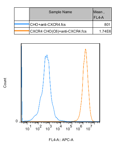 CXCR4 CHO 藥靶模型很好的模擬了體內(nèi) CXCR4 的信號轉(zhuǎn)導(dǎo)過程,原理見下圖所示。![]() Figure 1. CXCR4 CHO 細胞模型原理圖 |