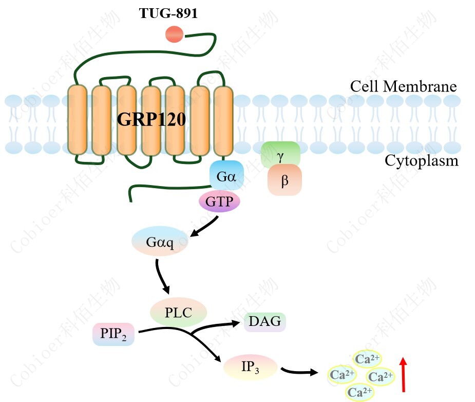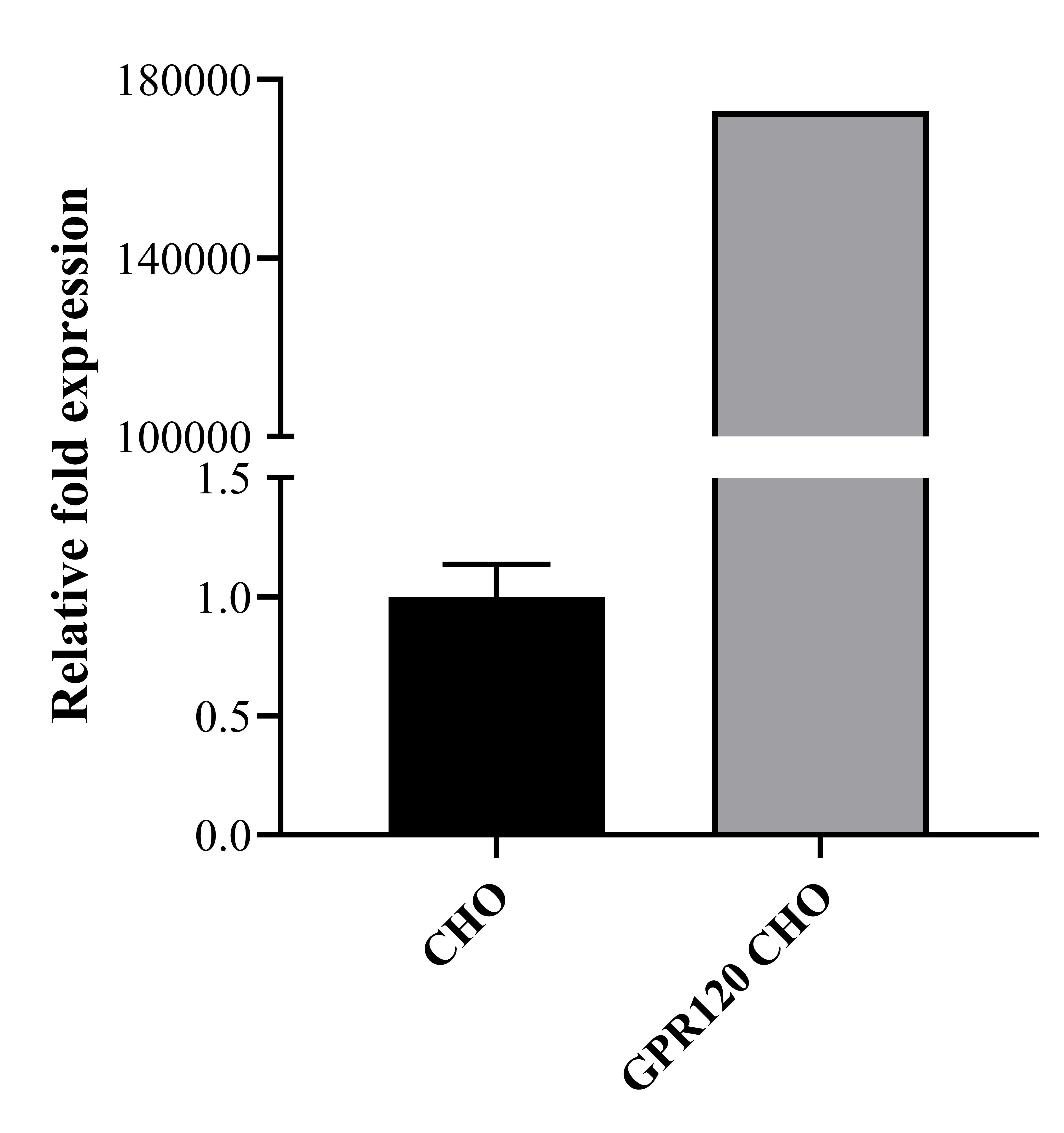 GPR120 與配體結(jié)合,導(dǎo)致 Gαq 亞基的激活,觸發(fā) PLC-γ,從而產(chǎn)生兩個(gè)第二信使: IP3 和 DAG,它們參與細(xì)胞內(nèi)鈣動(dòng)員。GPR120 CHO 細(xì)胞藥靶模型很好的模擬了體內(nèi) GPR120 的信號(hào)轉(zhuǎn)導(dǎo)過(guò)程,原理見下圖所示。![]() Figure 1. GPR120 CHO 細(xì)胞模型原理圖 |