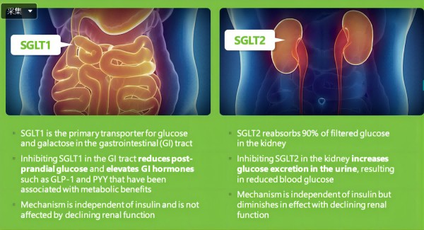 Sotagliflozin是口服的鈉-葡萄糖協(xié)同轉(zhuǎn)運(yùn)蛋白1型和2型(SGLT1和SGLT2)的雙重抑制劑。SGLT1負(fù)責(zé)胃腸道中的葡萄糖吸收,對(duì)SGLT1的抑制可抑制消化道對(duì)葡萄糖和半乳糖的吸收;而SGLT2負(fù)責(zé)腎臟對(duì)葡萄糖的重吸收,對(duì)SLGT2抑制則是減少腎小管對(duì)葡萄糖的重吸收。