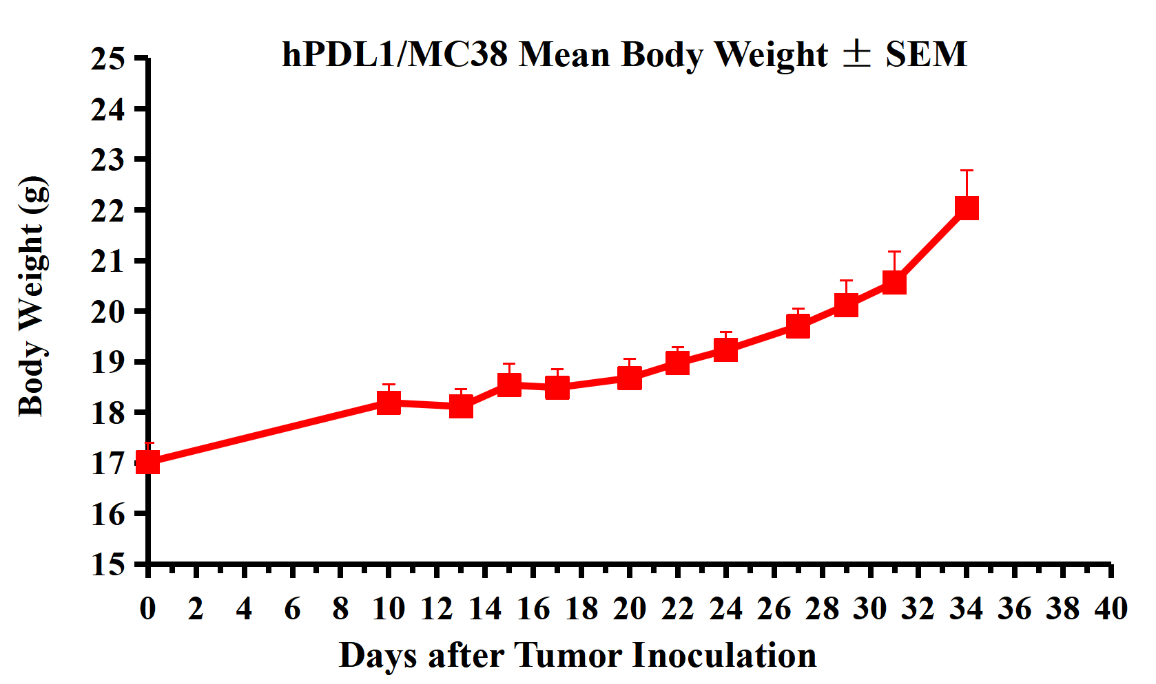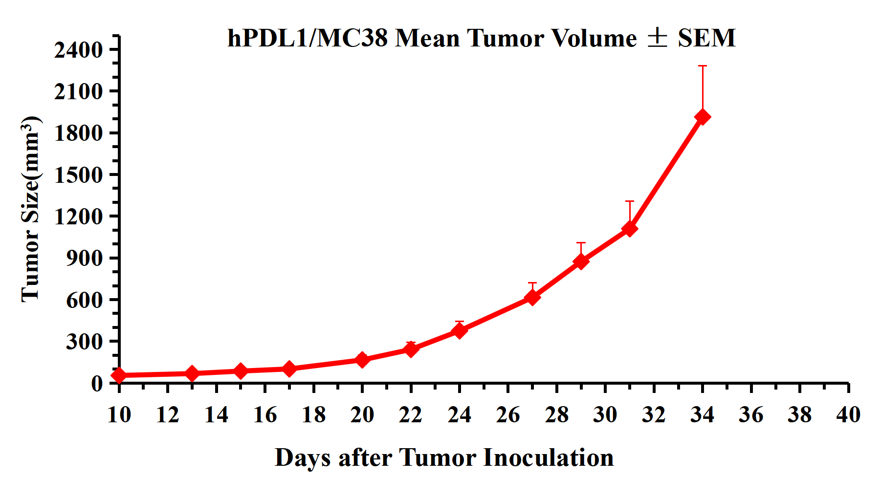 Figure 2. hPDL1/MC38 Mean Tumor Volume ± SEM.