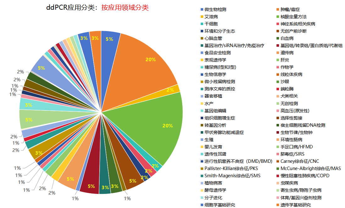 DdPCR技術(shù)有很多方面的應(yīng)用,我們按照發(fā)表文章的領(lǐng)域,可以簡單劃分為: