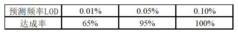 0.05%的誤差范圍是±50%,就是0.025-0.075%,因此我們選擇3個(gè)點(diǎn),探尋LOD分別為 0.010%、0.050%、0.100%,要求95%檢出。