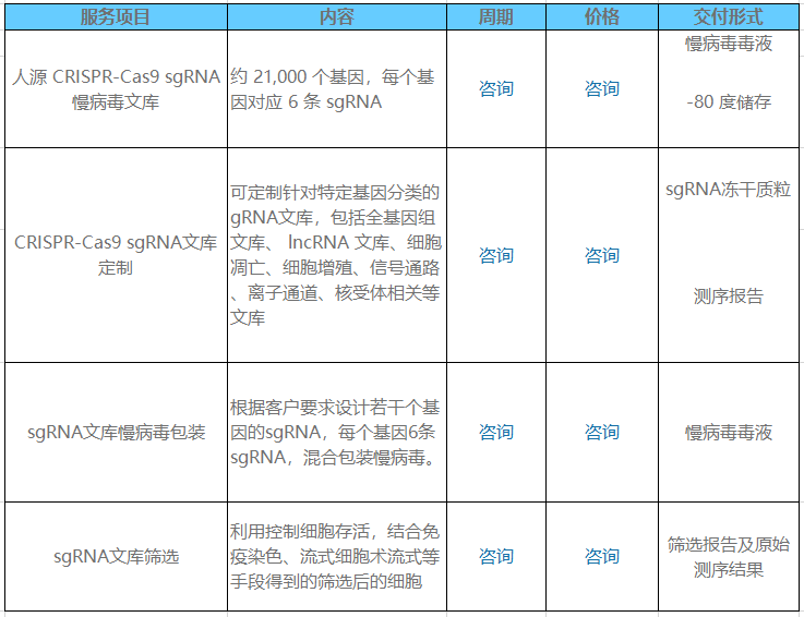 · 為客戶提供從sgRNA文庫設計、芯片Oligo引物合成、文庫構建及慢病毒包裝到篩選的一站式基因功能篩選服務。