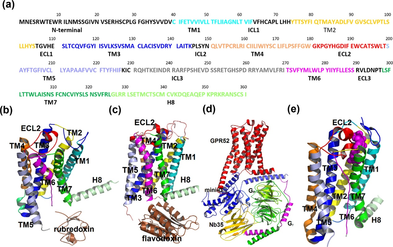已知人類有800多個(gè)GPCR受體,其中大約有100多個(gè)孤兒受體。GPR52是一個(gè)典型的孤兒GPCR,主要在大腦中表達(dá)并發(fā)揮重要的生理作用,被認(rèn)為是治療各種精神類疾病,包括亨廷頓病、精神分裂癥、認(rèn)知障礙、腦畸形和和多動(dòng)癥的潛在靶點(diǎn)。