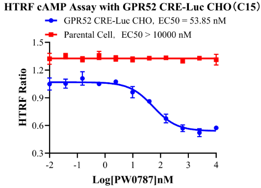 Figure 5. HTRF cAMP Assay with GPR52 CRE-Luc CHO(C15).