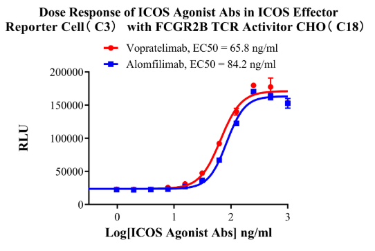 為了助力ICOS靶點藥物的研發(fā),科佰生物開發(fā)了一系列關(guān)于ICOS-ICOSL的細(xì)胞模型,用于候選藥物早期機理研究。部分結(jié)果如下: