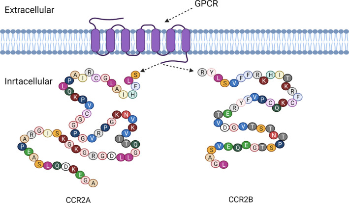 CCL2,也稱為單核細(xì)胞化學(xué)吸引蛋白-1(MCP-1),作為一種由76個(gè)氨基酸組成、容量為13 kDa的蛋白質(zhì),CCL2具有兩個(gè)相鄰的氨基端半胱氨酸殘基。CCL2主要由免疫細(xì)胞分泌,此外,平滑肌細(xì)胞、內(nèi)皮細(xì)胞、類囊狀細(xì)胞和成纖維細(xì)胞也能夠產(chǎn)生CCL2。多種介質(zhì)可以誘導(dǎo)CCL2表達(dá),如IL-1、IL-4、IL-6、TNF-α、TGF-β、IFN-γ等。CCL2調(diào)控多種免疫細(xì)胞的遷移和浸潤(rùn),包括單核細(xì)胞、巨噬細(xì)胞、記憶T淋巴細(xì)胞和自然殺傷細(xì)胞。有報(bào)道稱CCL2可結(jié)合多種受體,但CCR2仍被認(rèn)為是CCL2的主要受體。CCL2的氨基末端區(qū)域是決定CCR2結(jié)合親和力和信號(hào)選擇性的重要因素。CCR2屬于GPCRs,包含一個(gè)N端細(xì)胞外結(jié)構(gòu)域和七個(gè)保守的跨膜結(jié)構(gòu)域。根據(jù)末端羧基尾的差異,CCR2分為CCR2A和CCR2B,它們可能通過(guò)不同的信號(hào)通路發(fā)揮作用。