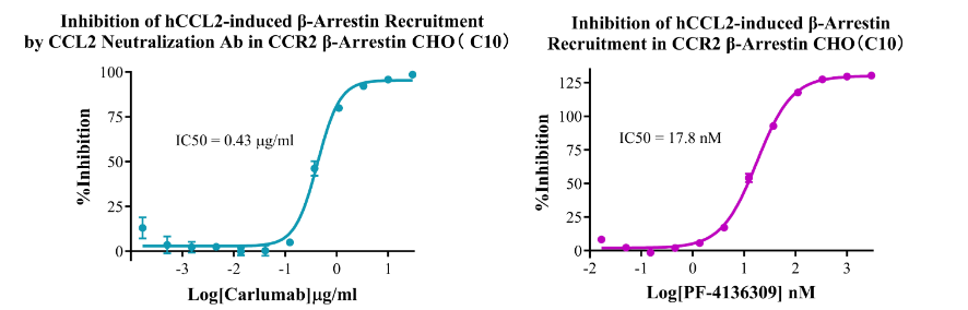 為助力CCR2靶點(diǎn)藥物研發(fā),南京科佰開發(fā)了CCR2/β-Arrestin/CHO、CCR2/CHO、CCR2/Gα15/CHO、CCR2/Gα16/HEK293細(xì)胞篩選模型,產(chǎn)品驗(yàn)證結(jié)果如下: