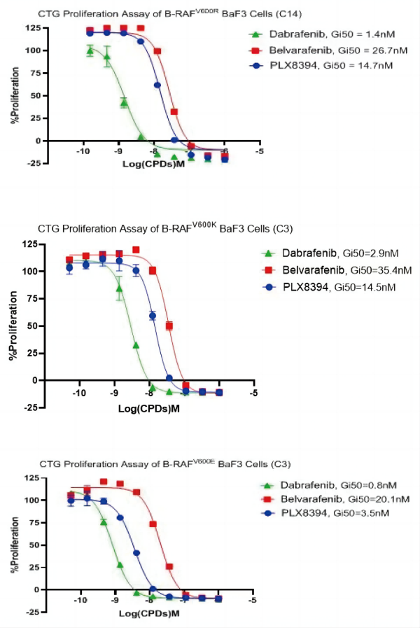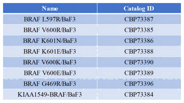 針對BRAF靶點藥物開發(fā)研究的需求,科佰開發(fā)了多種BRAF靶點相關(guān)的藥篩細胞模型,模擬體內(nèi)相關(guān)作用機理,可快速便捷篩選候選藥物、體外活性檢測以及放行階段的QC檢測。