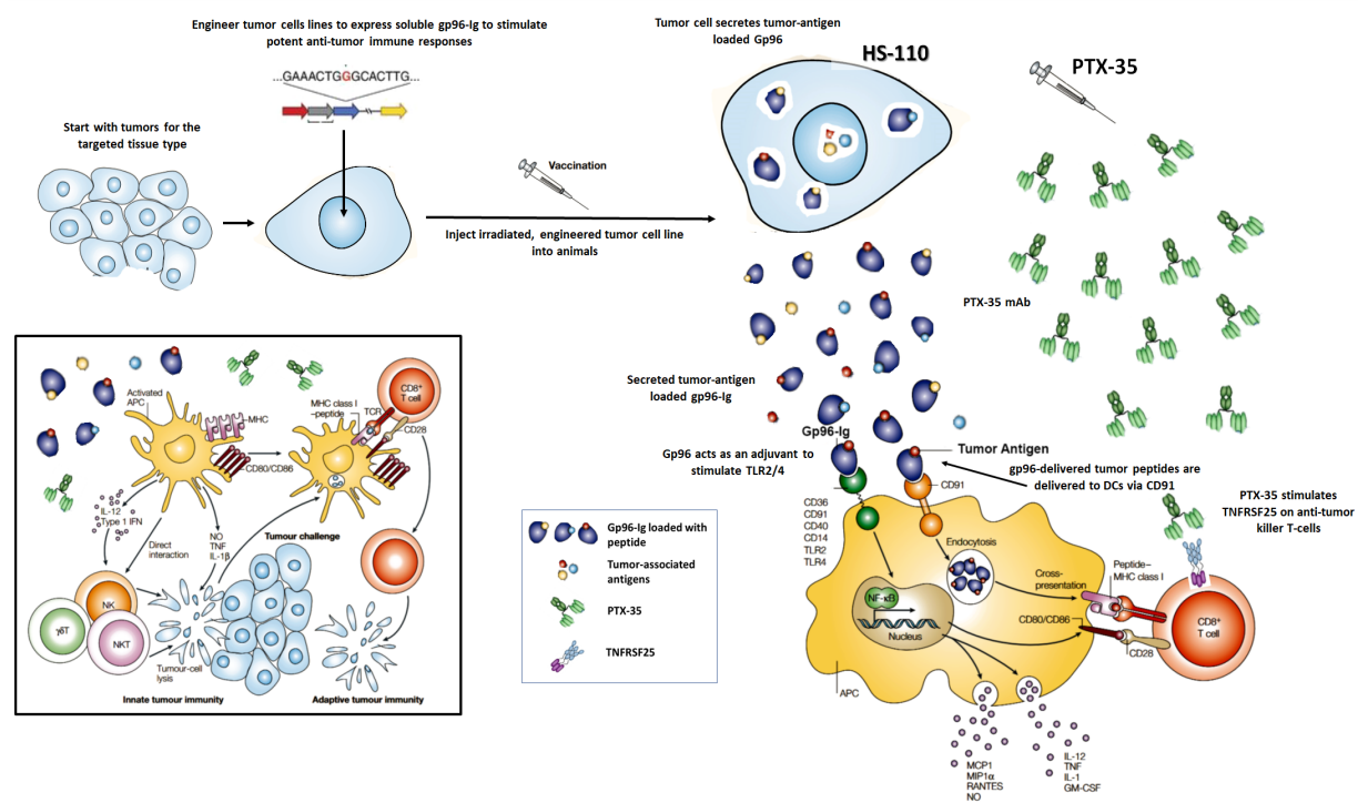 也有文章揭露,在體內(nèi)通過(guò)可溶性TL1A觸發(fā)DR3可促進(jìn)抗原特異性CD8(+) T細(xì)胞的增殖和積累,以及它們向CTL的分化。此外,DR3也作為記憶性CD8(+) T細(xì)胞的共刺激受體,其被觸發(fā)時(shí)會(huì)增強(qiáng)內(nèi)源性抗原特異性記憶CD8(+) T細(xì)胞的二次擴(kuò)增。因此,DR3(TNFRSF25)激動(dòng)劑,可能潛在地用于增強(qiáng)旨在誘導(dǎo)人類(lèi)抗腫瘤CD8(+) T細(xì)胞的免疫原性從而達(dá)到抗腫瘤的作用。目前處于臨床I期的抗體藥物PTX-35,就是一種用于T細(xì)胞擴(kuò)增的新型TNFRSF25激動(dòng)劑。PTX-35協(xié)同腫瘤抗原負(fù)載gp96共刺激CD8+ T細(xì)胞激活DC,增強(qiáng)先天性免疫和繼發(fā)性免疫,從而產(chǎn)生有效的腫瘤殺傷效應(yīng)細(xì)胞和長(zhǎng)期記憶。
